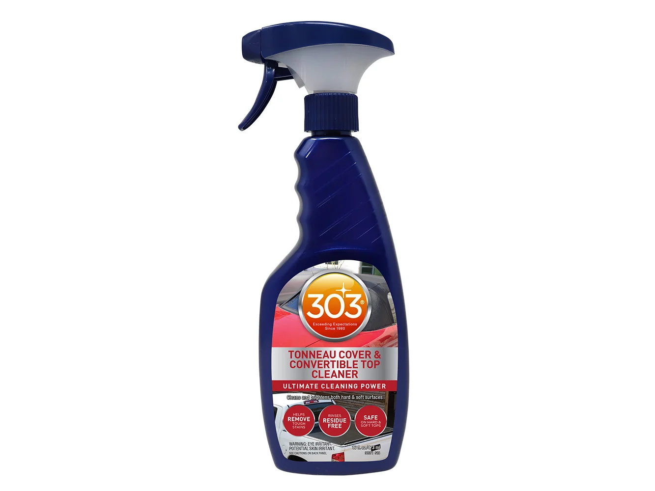 303 Tonneau Cover and Convertible Top Cleaner is specially formulated to clean and brighten Tonneau covers, fabric and vinyl convertible tops and car bras.  Recommend to use prior to treating with 303 Fabric guard or Protectant.