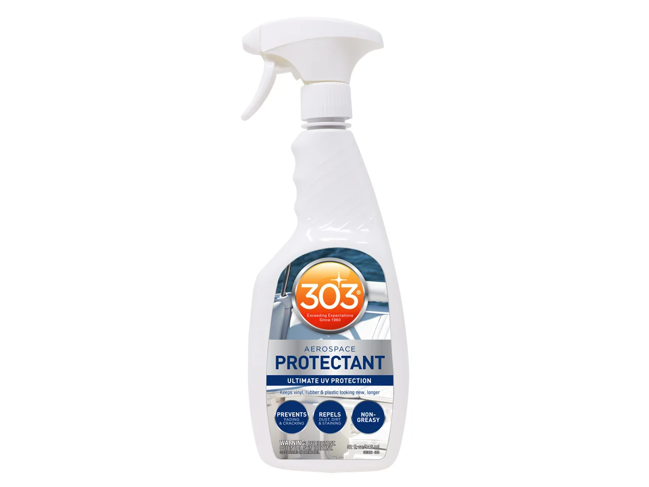 No other product provides this much protection for your boat and water gear. Use Aerospace Protectant to keep your boat’s seats, sails, hull and windows colorful and clean. Marine Aerospace Protectant is a premium protectant designed to safeguard boats and boat equipment against the damaging effects of daily exposure to UV rays. It’s safe for use on outdoor gear and apparel, too.