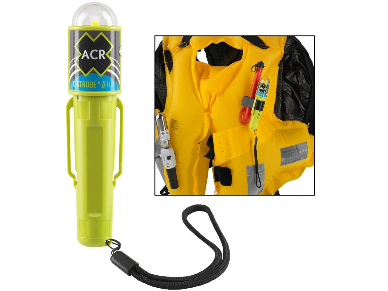 The LED C-Strobe™ H2O is either a water or manually activated personal distress strobe light with a dramatically improved operating life.