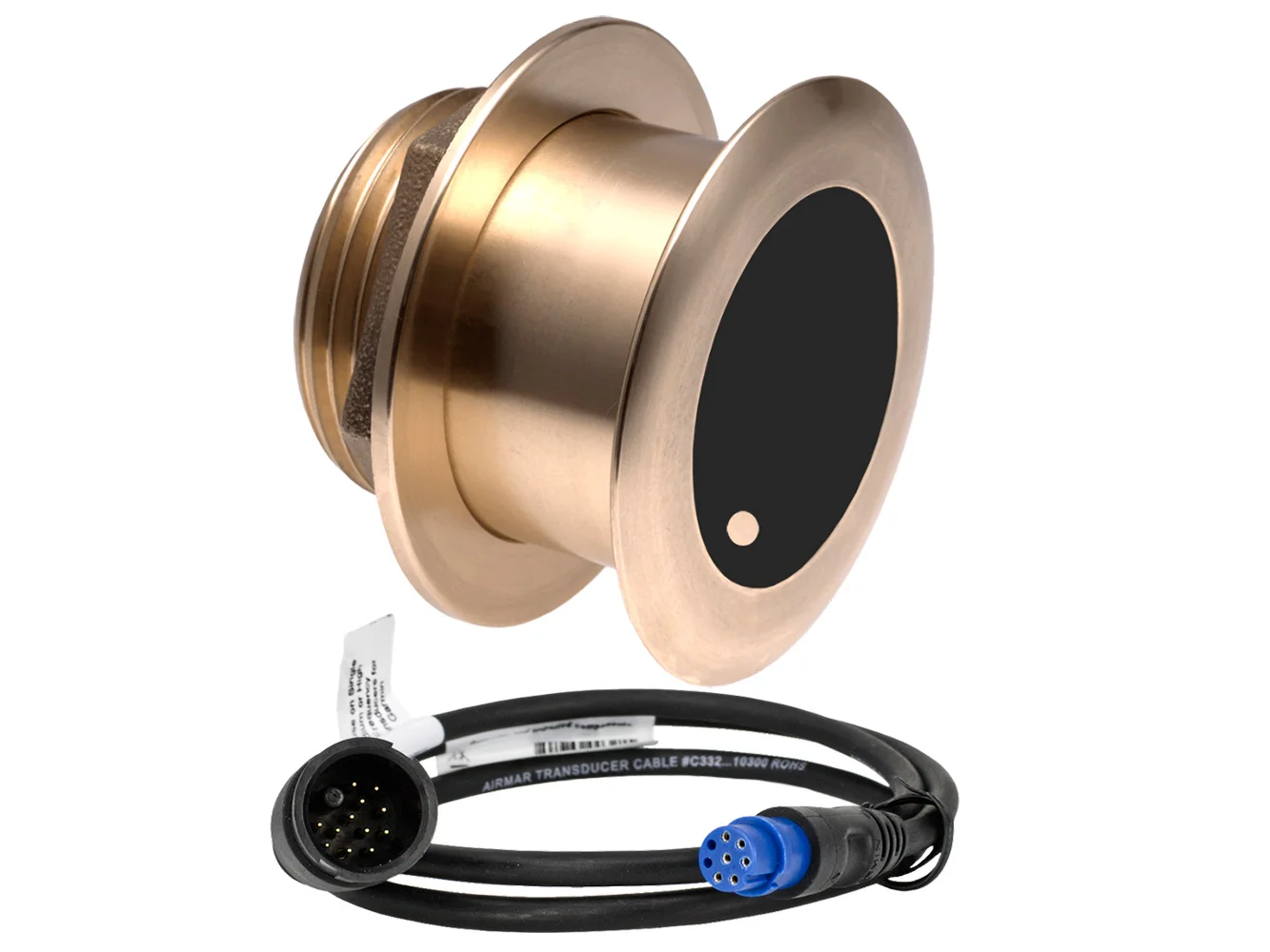 The B175MW Tilted Element Thru-hull is a 1 kW transducer housed in one of AIRMAR’s most popular Tilted Element housings which includes a ceramic element fixed at a 20° angle. Because the transducer is installed almost flush with the hull, the tilted element corrects for the hull deadrise and orients the ceramic element vertically to ensure maximum echo returns to the transducer.