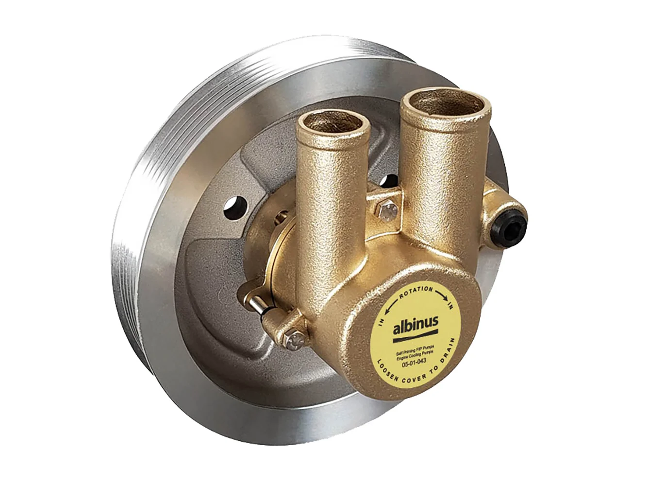 Albin Pump Marine engine cooling seawater pumps follow standards regarding dimensions, interchangeability, and performance. The range consists of flange-mounted, belt-driven, and crankshaft pulley-driven pumps for the most common marine inboard engines.
