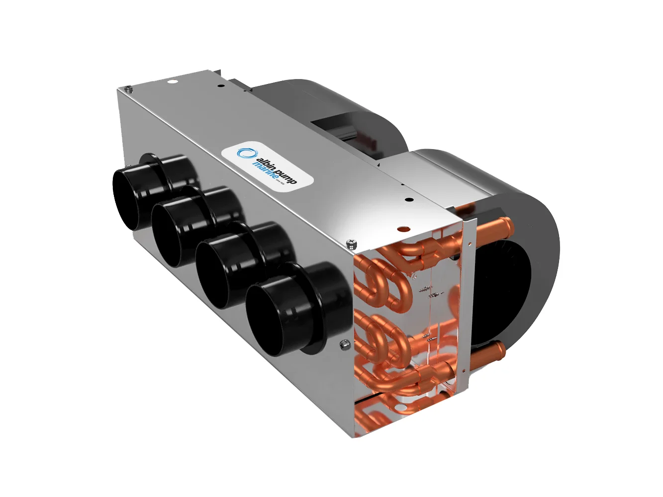 Marine defroster/ heater with 12kW heater coil and double 24V radial blowers.