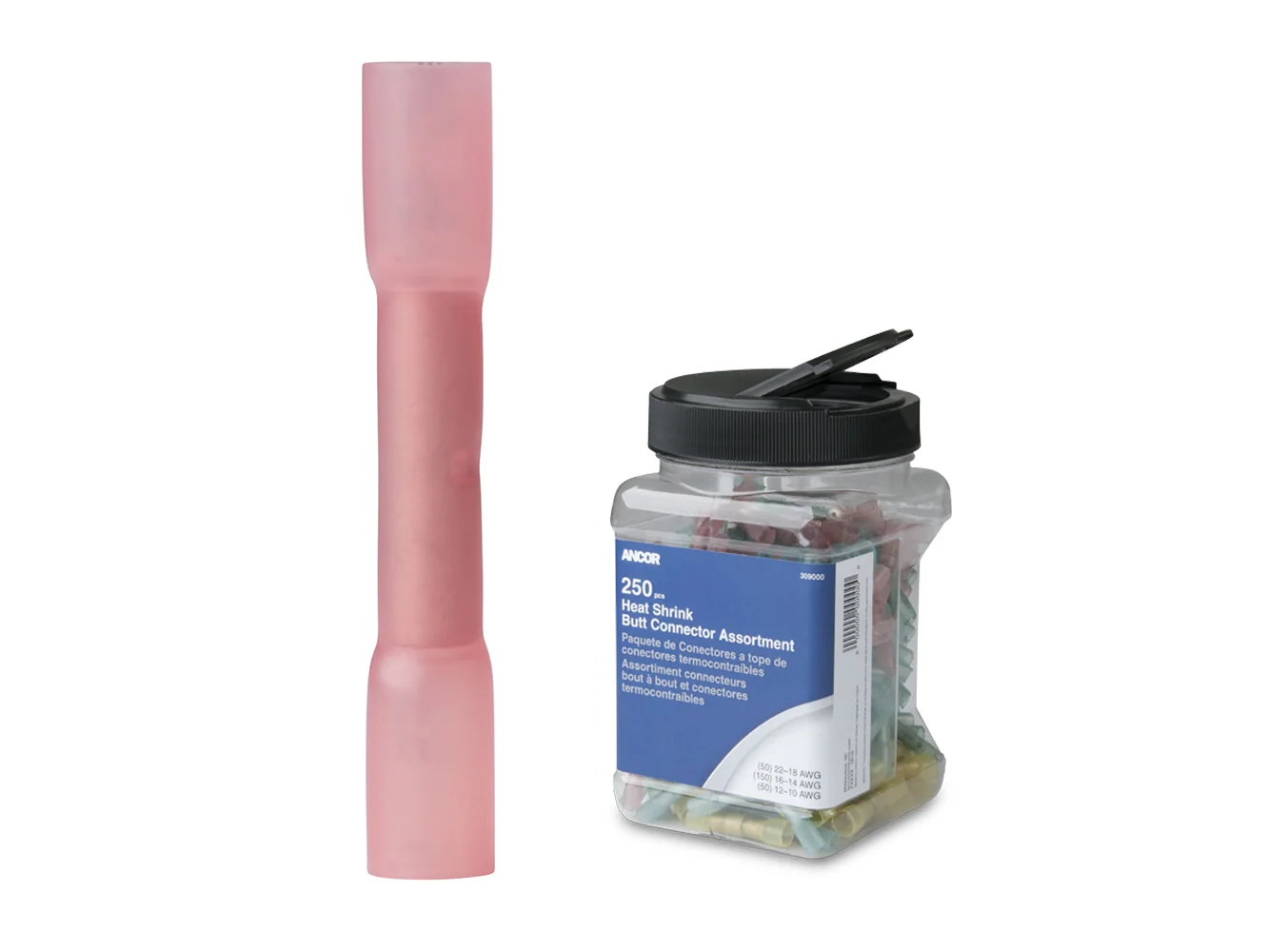 22-18 AWG Heat Shrink Butt Connector – 250-Pieces – Jar