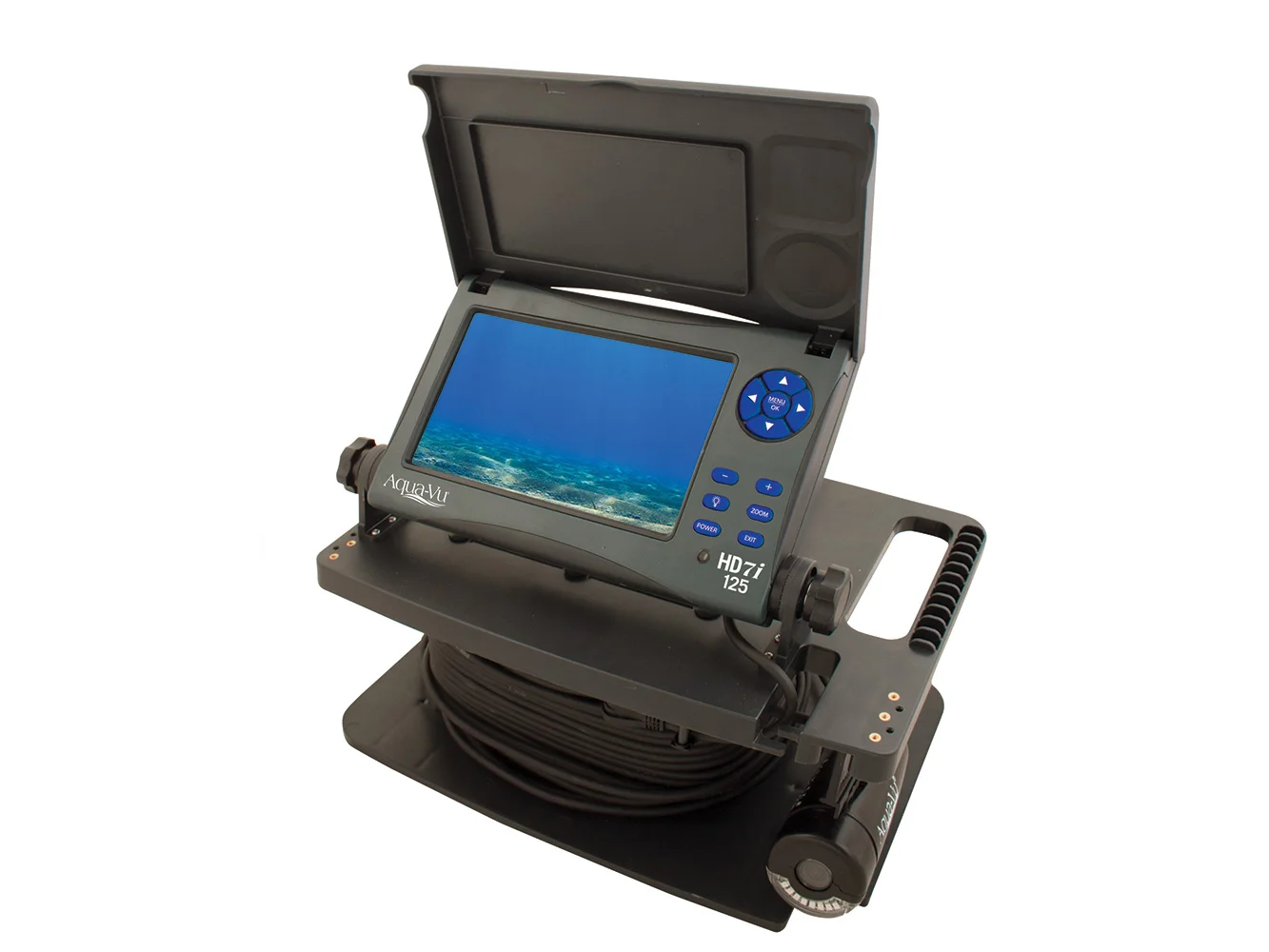 This is the HD7i 125 Gen2 with full 1080p HD resolution and image-clarifying True-Color technology, plus battery power saver mode. Outfitted with Aqua-Vu’s modular XD Camera with quick attach, the HD7i 125 High-Definition Underwater Viewing System displays rich, colorful underwater video on a dynamic and spacious 7-inch Daylight Viewable LCD. The XD Camera includes 125 feet of durable cable with high-intensity, adjustable IR lighting and is compatible with all Aqua-Vu XD accessories (sold separately).