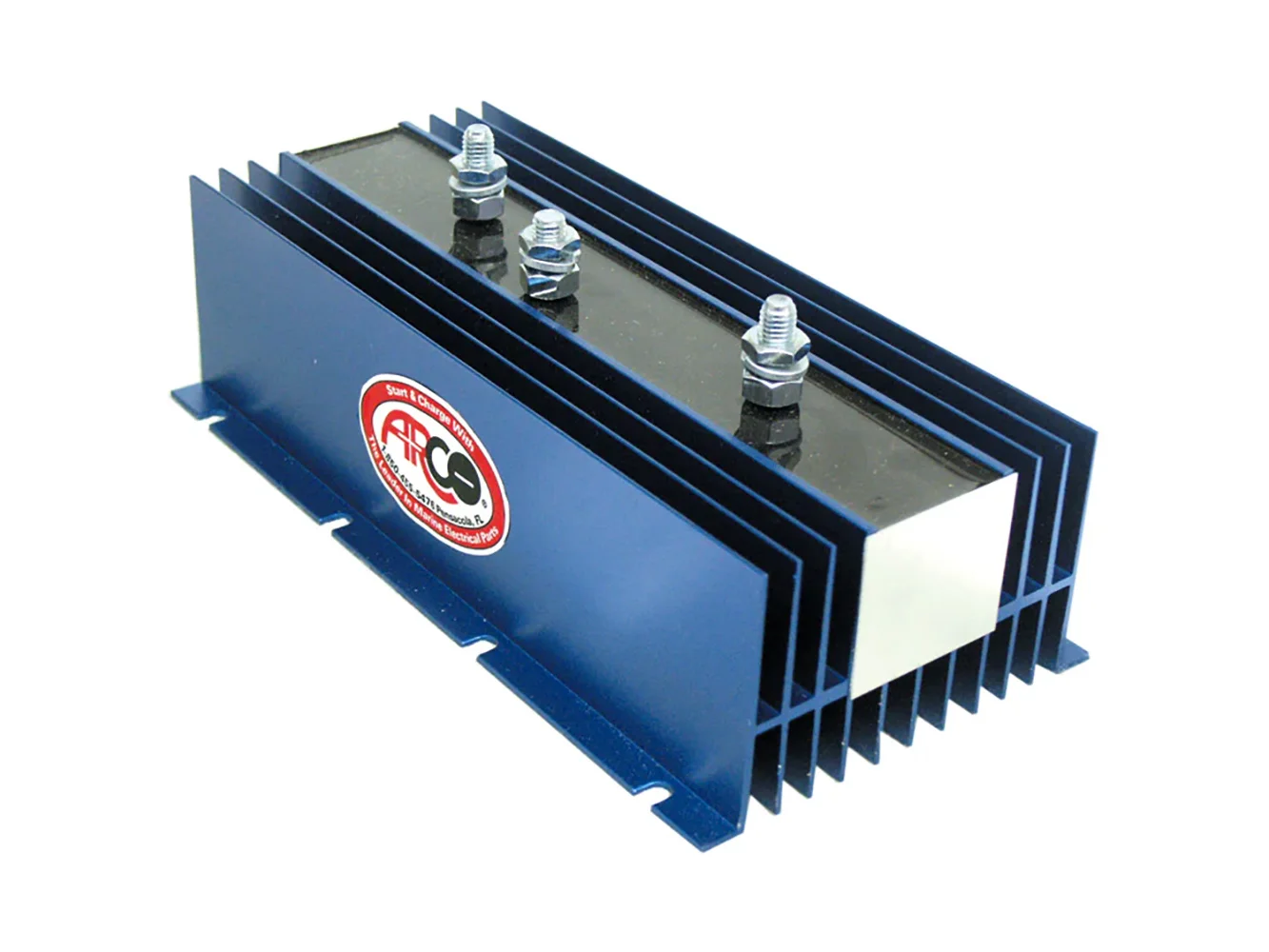 The Arco Marine BI-1602 is an inboard/outboard battery isolator that can handle 1 alternator, 2 batteries, and 160A max. Rated for use with 10 to 350-amp alternators on 12, 24, or 32-volt negative ground systems.