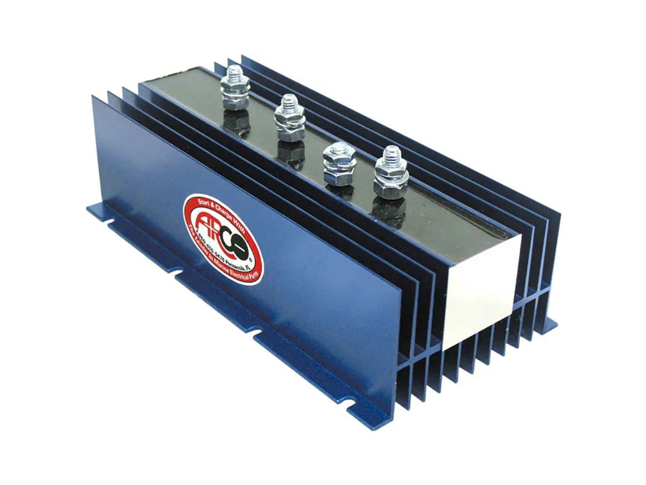 The Arco Marine BI-1603 is an inboard/outboard battery isolator that can handle 1 alternator, 3 batteries, and 160A max. Rated for use with 10 to 350-amp alternators on 12, 24, or 32-volt negative ground systems.