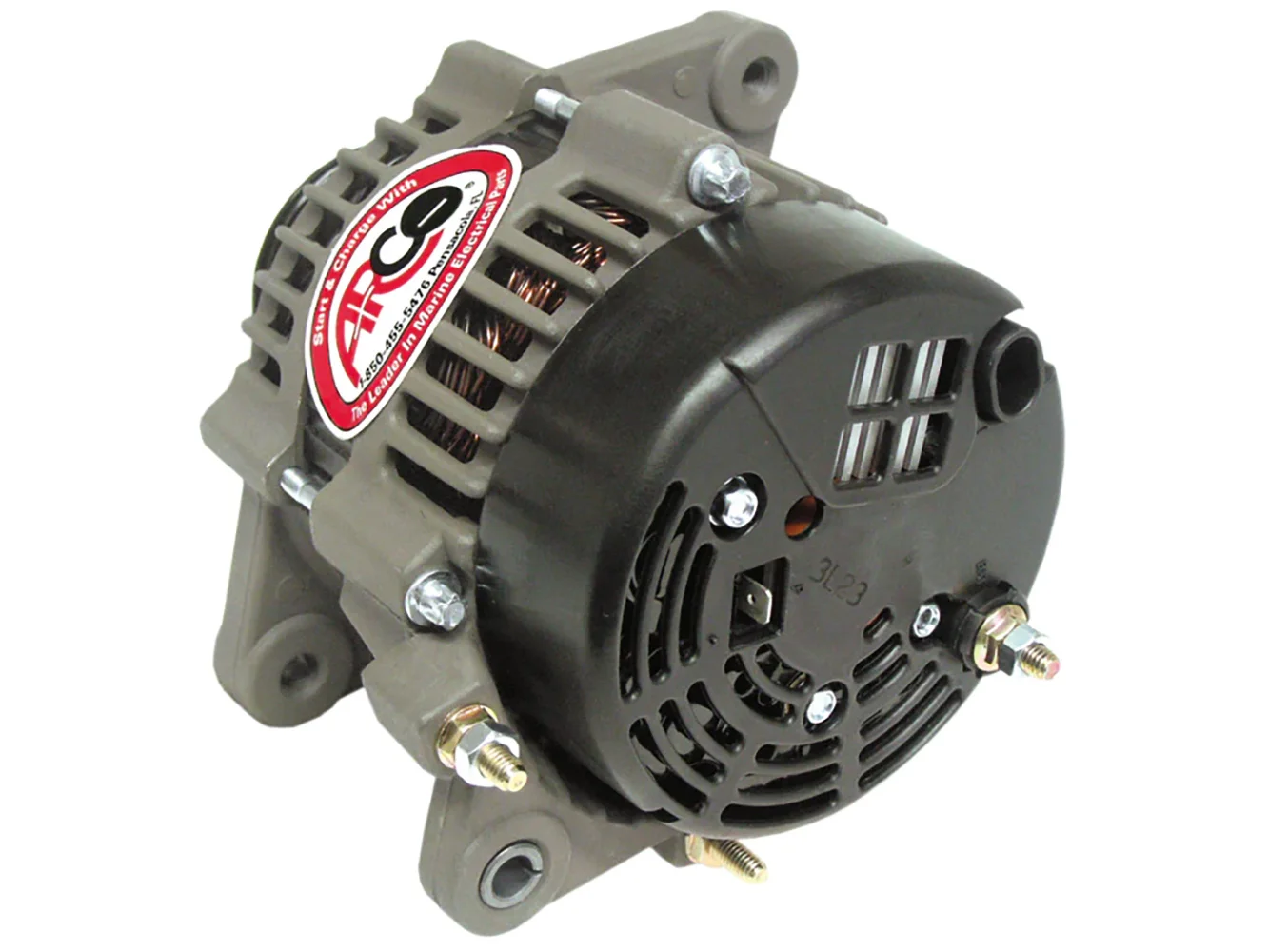 Replacement alternator that will fit Mercruiser 4.3L – 8.2L, 1998-Up, 12 Volt, 70 AMP, Internal Fan, 65-mm multi-groove serpentine pulley included.