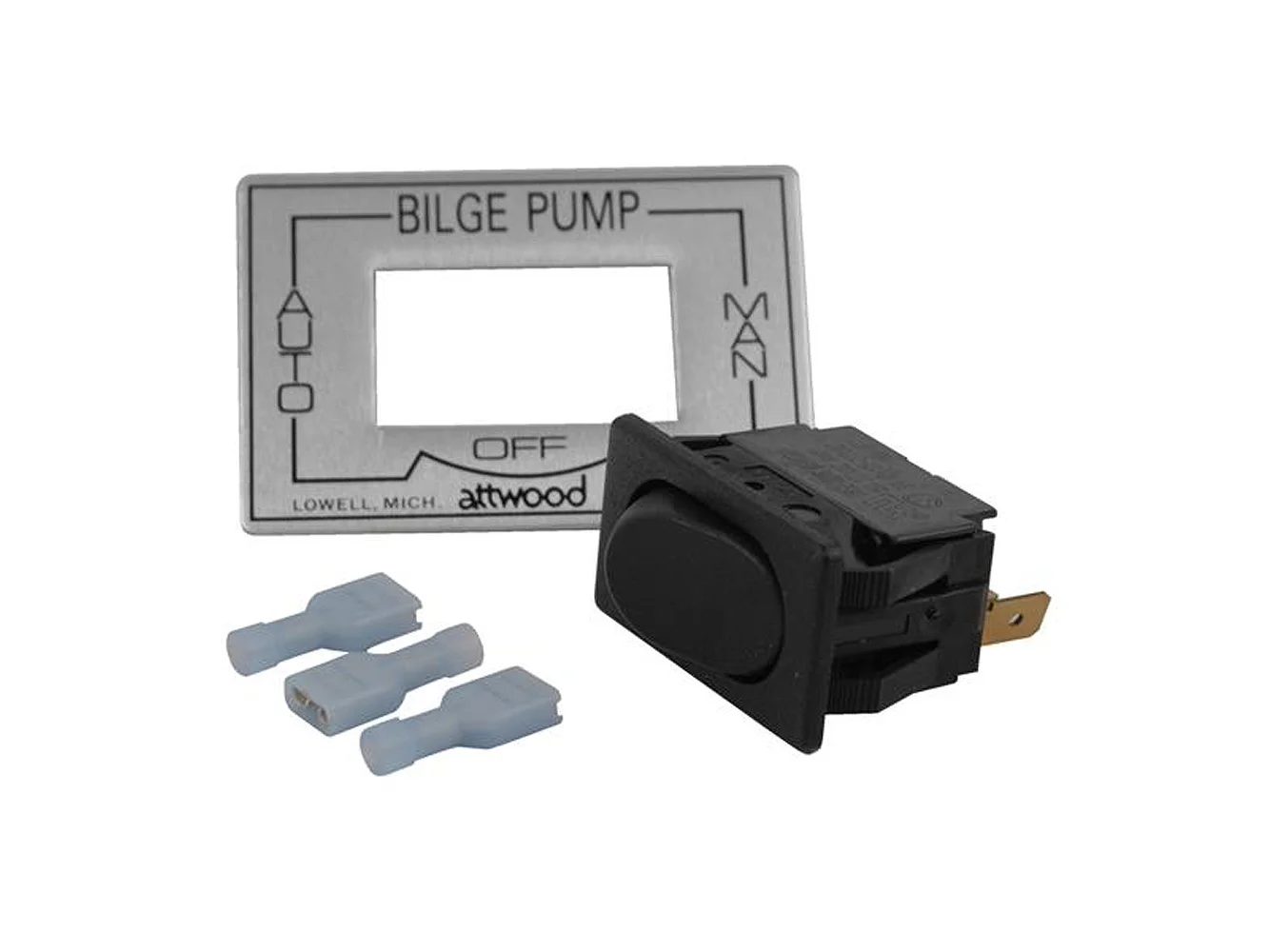 Panel-mounted rocker switches for use with pump that draws 10 amps or less.