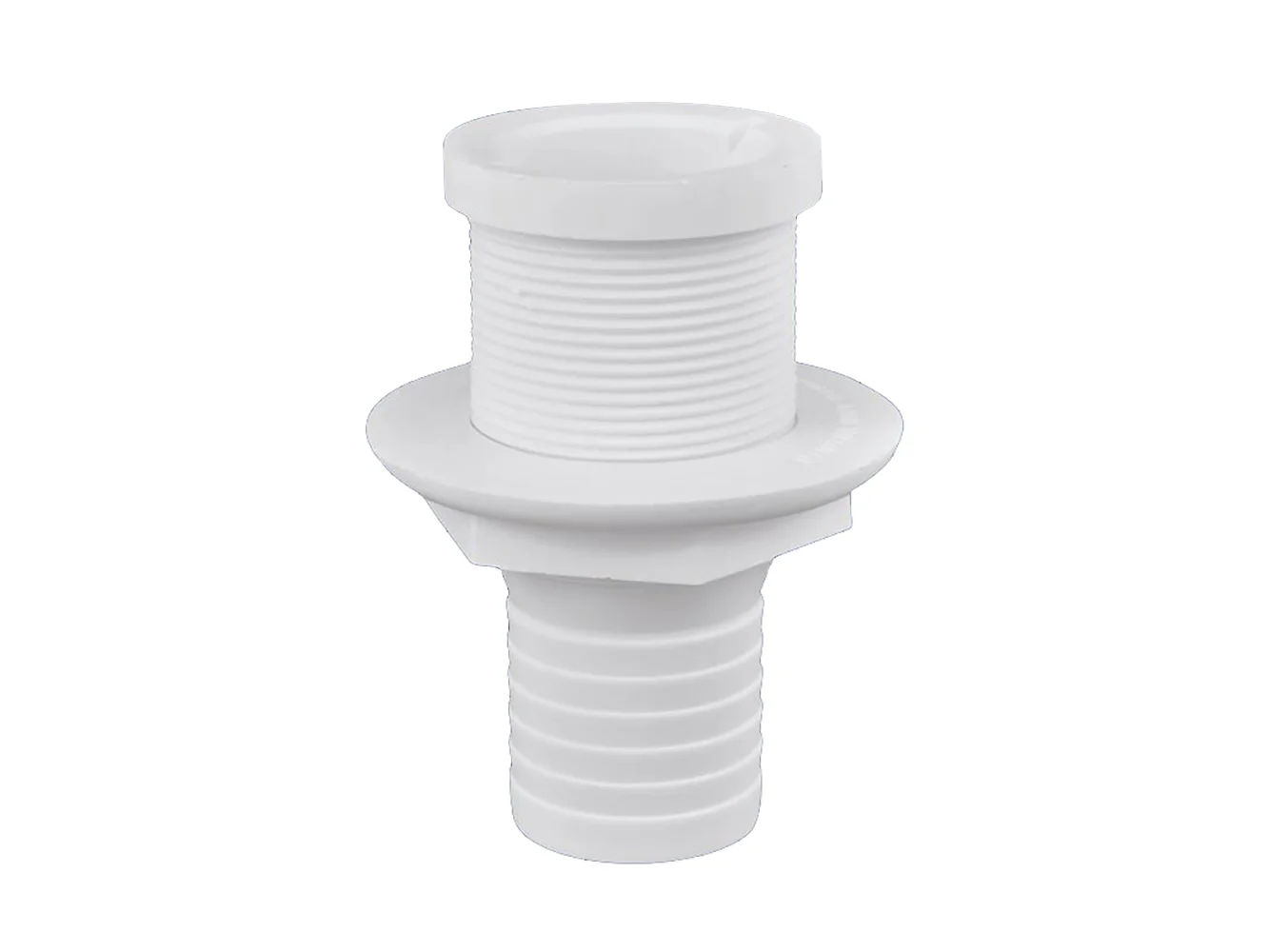 For use with 1-1/2″ I.D. hose as part of a self-bailing cockpit system. Features short stem and narrow flange for installing through cockpits. Polypropylene construction.
