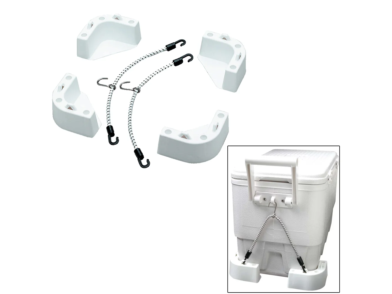 - Coolers corners stay put with straps to prevent injury, boat and cooler damage