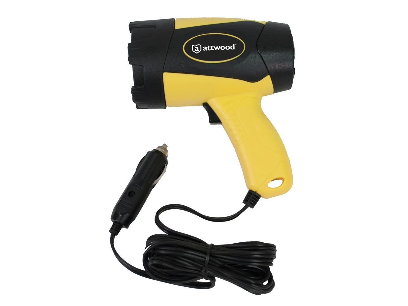 Attwood’s 12V LED Portable Spotlight provides bright light when you need it. Comes with a cigarette style 12V adapter plug and a 10′ power cord. LED power indicator light denotes when power is being supplied to the light. Spotlight has a 50,000 – 100,000 hour life. Up to 400 lumens of power. Safety yellow and black color scheme.