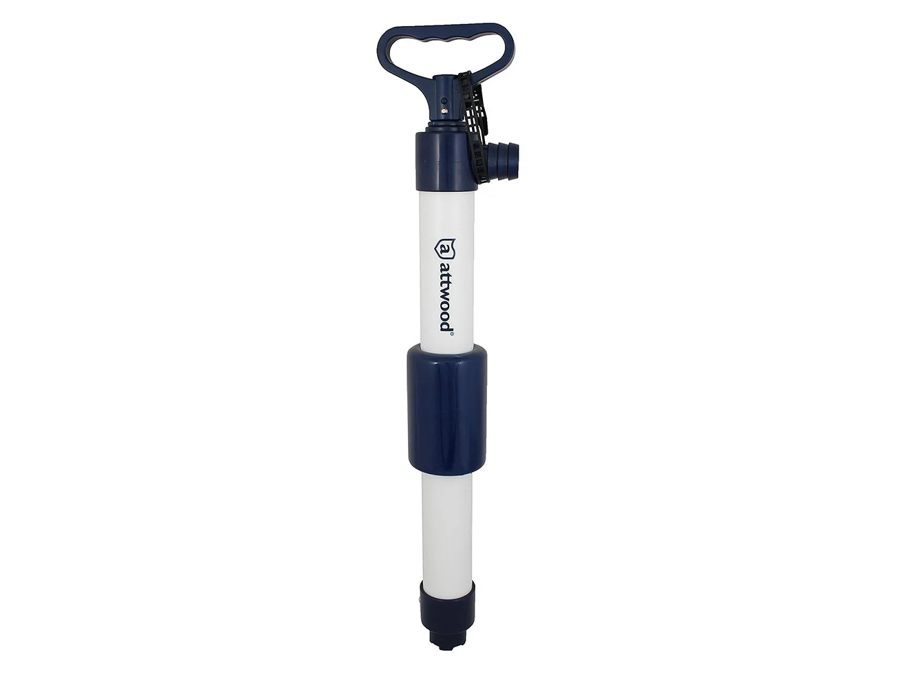 This Attwood Hand-Operated Bilge Pump quickly and safely removes unwanted water and other liquids from small craft such as kayaks, canoes, and small fishing boats. This pump can remove up to 8 gallons per minute, and no hose is required. The pump is an 18-inch-long pump and has an ergonomic hand grip that keeps the pump afloat if dropped into the water.
