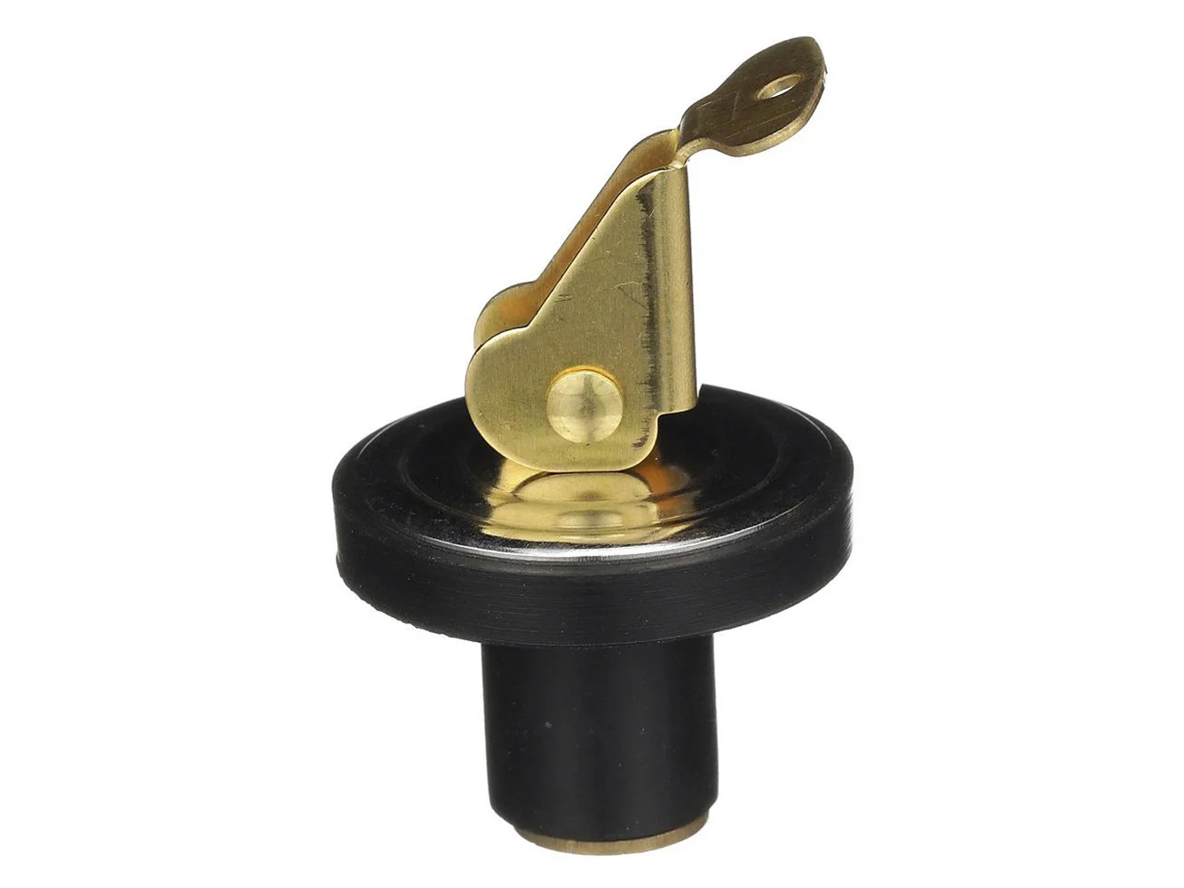 A clockwise turn of the handle tightens the plug and the lever flips down to lock. This plug is ideal for livewell drains.