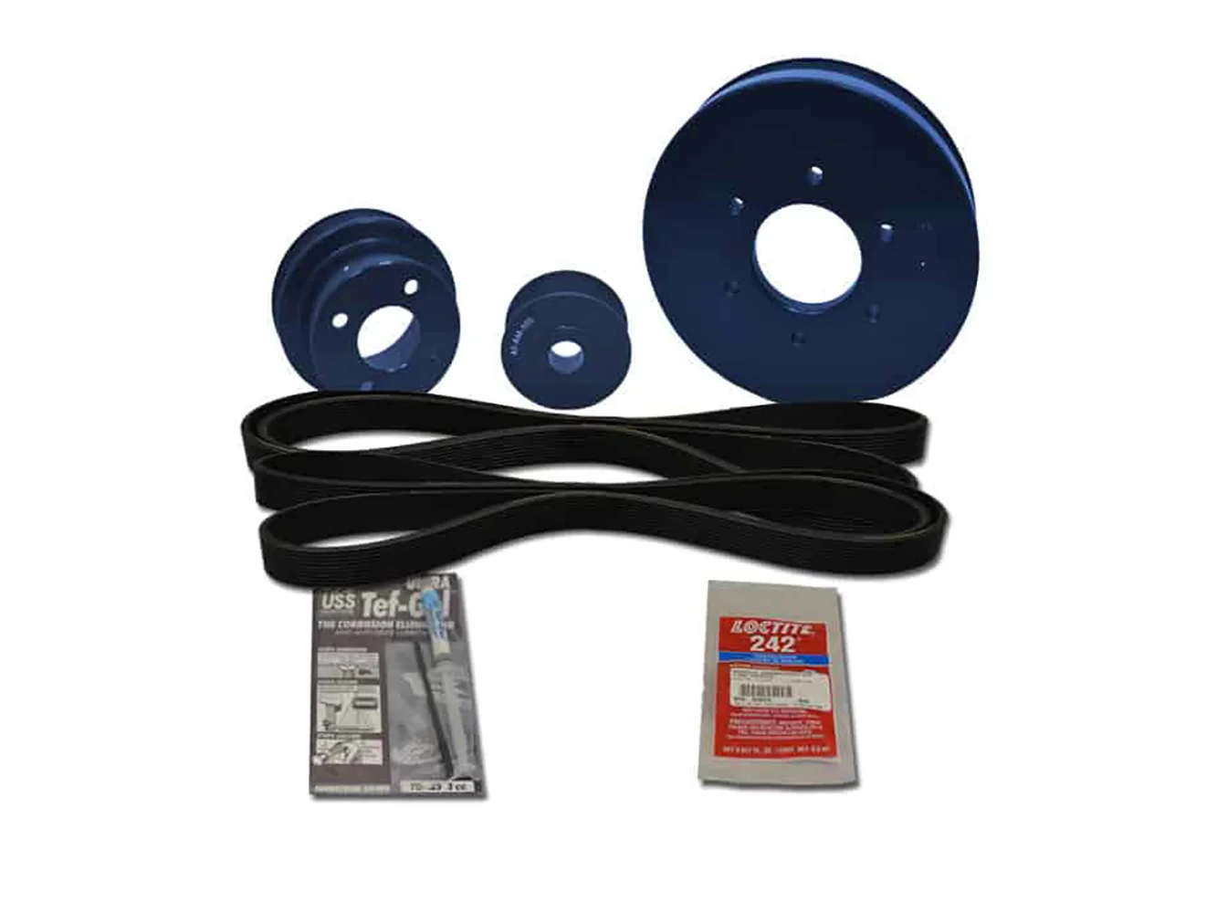Kit Includes: Three Ten-Groove (J10) Pulleys, Two J10, 55" Circumference Serpentine Belts (one spare)