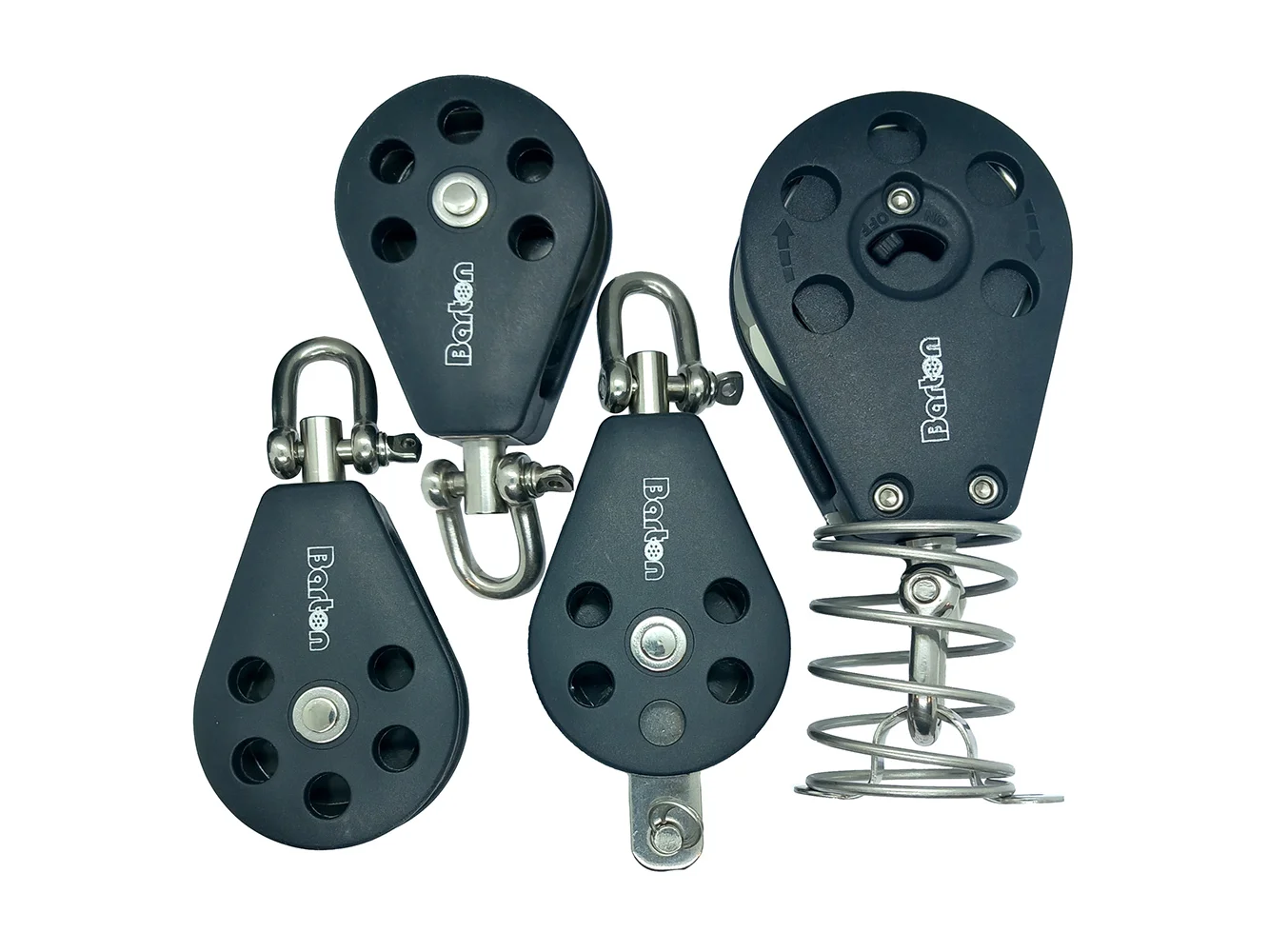 Upgrade or replace your current Mainsheet line hardware with the Barton class-approved Manta/Odyssey Land Sailing Mainsheet Block Kit. Creates a 2:1 mechanical advantage on the mainsheet line. Complete with all hardware and instructions.