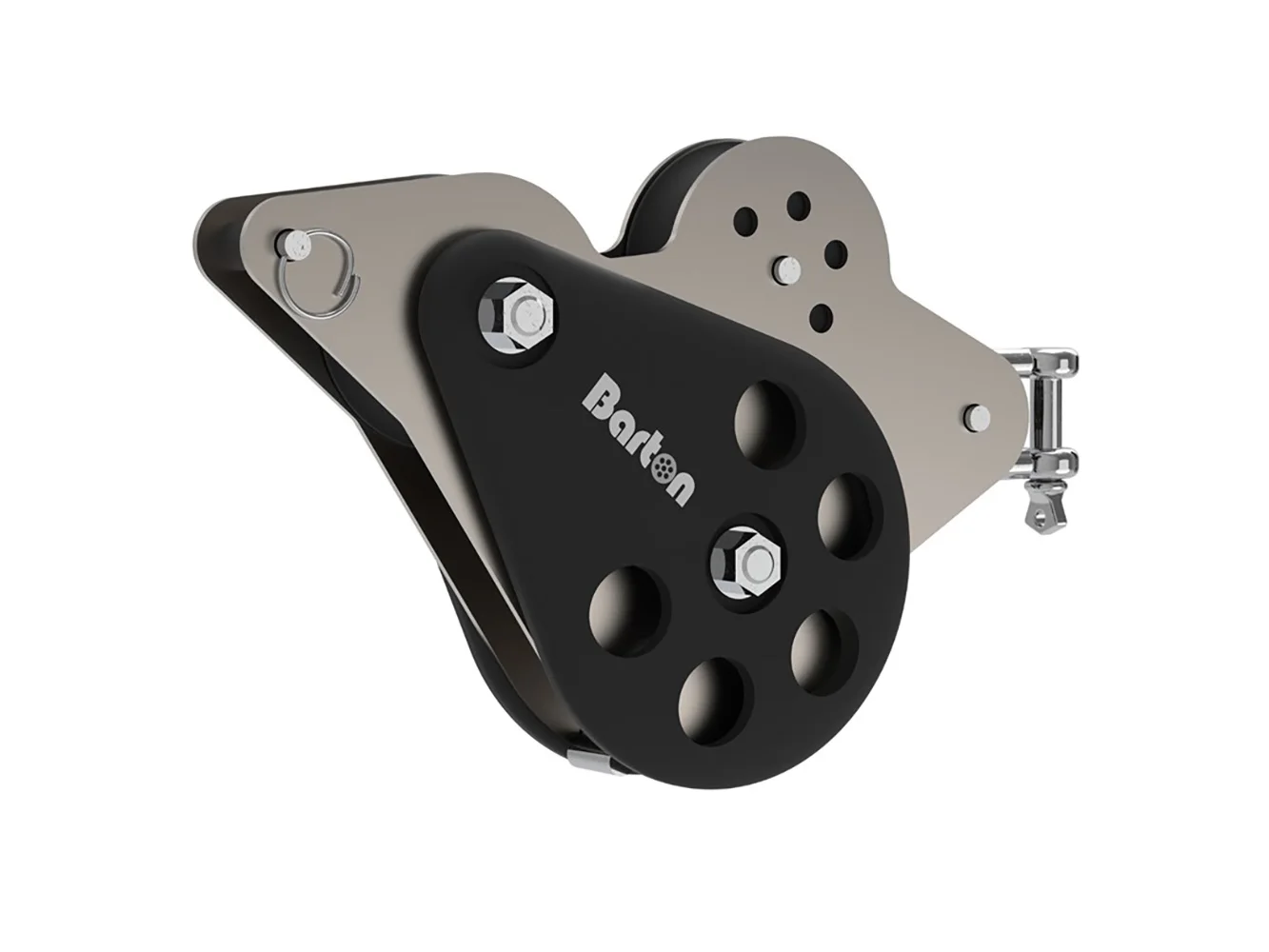 The Barton SkyLock 800 features 316 stainless steel side plates, glass-reinforced nylon cover plates, and an internal self-locking aluminum cam to lift and lock loads securely using lines of 8 12mm.