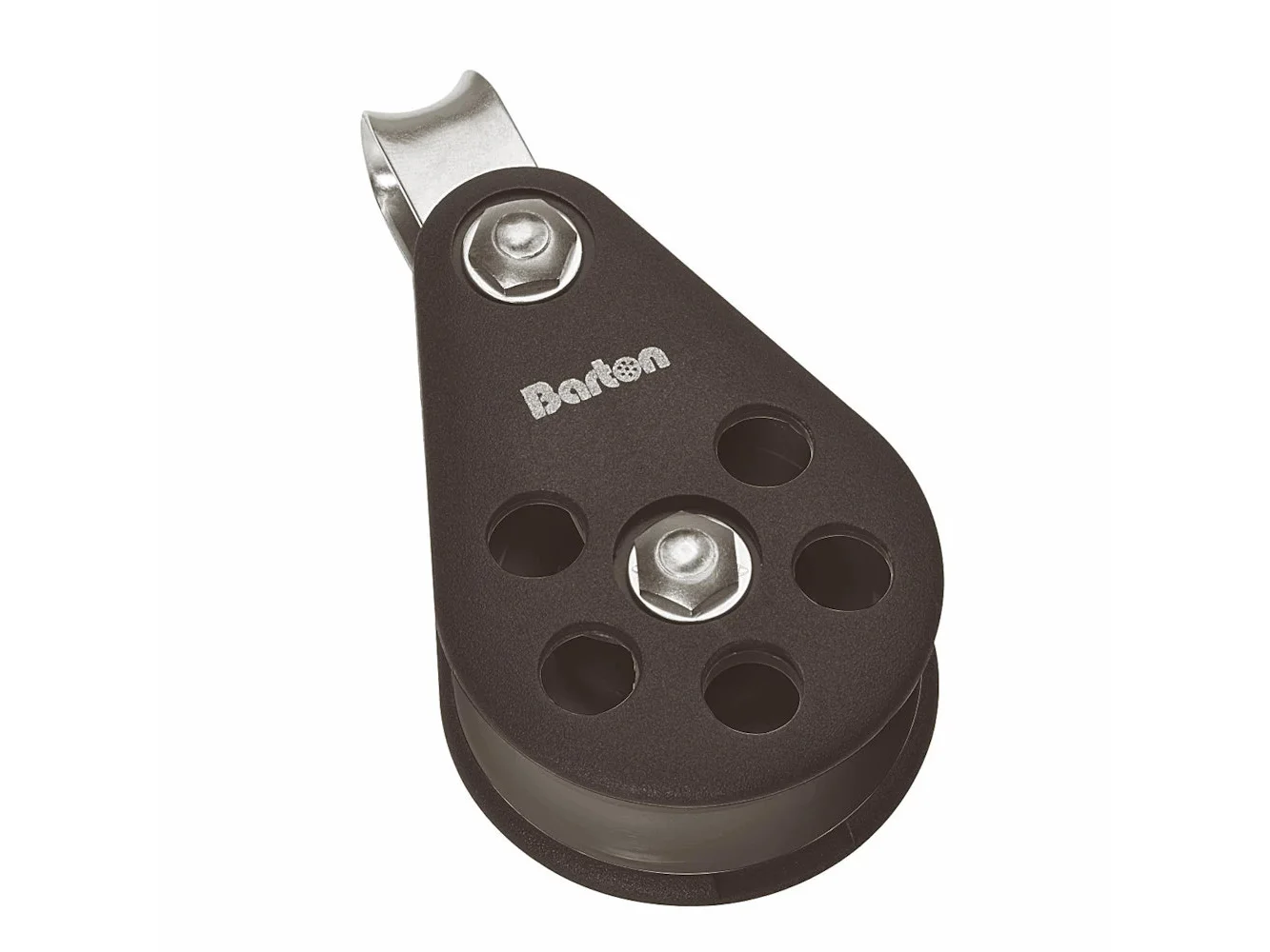 The Size 5 Barton range of blocks has a 54mm 2 1/8" sheave. They are a rugged construction, featuring high-grade molded side plates that are through-bolted and riveted for added strength and security. All load-carrying components and interior frame are from marine grade 316 stainless steel and both plain and ball bearing sheaves are available. This sleek and versatile range is engineered for use on larger cruising and racing yachts and is compatible with our ball-bearing mainsheet traveler system.