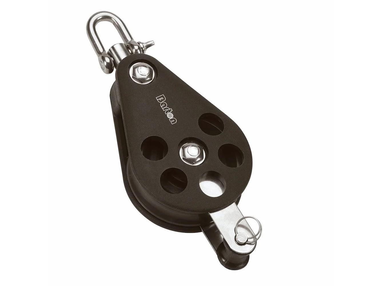 The Size 5 Barton range of blocks has a 54mm 2 1/8" sheave. They are a rugged construction, featuring high-grade moulded side plates that are through-bolted and riveted for added strength and security. All load-carrying components and interior frame are from marine-grade 316 stainless steel, and both plain and ball bearing sheaves are available. This sleek and versatile range is engineered for use on larger cruising and racing yachts and is compatible with our ball bearing mainsheet traveller system.