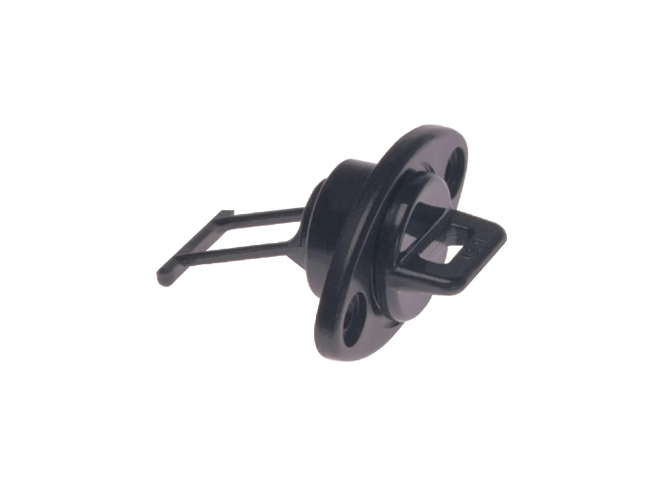 Screw-type drain plug with patented self-cleaning thread design, O-ring, and super strength center retaining legs to secure the center while draining. Ideal installation for transom of personal watercraft, small boats, fish wells, coolers, ice chests, water tanks, etc. Part should be mounted in a 1″ ID hole with two S/S fasteners and positioned with gap in thread at lowest point.