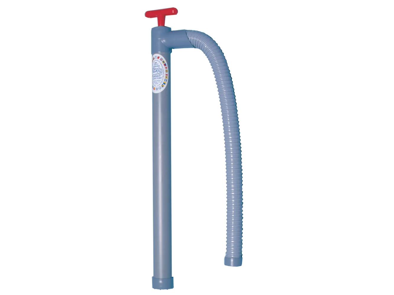 The Beckson THIRSTY-MATE hand pump is manufactured in the U.S.A. of the finest materials available. It is self-priming and very easy to clean. This hand pump will not rust or corrode or mar your boat. If your THIRSTY-MATE hand pump becomes clogged, simply remove the foot valve assembly and clean out the inside. Spare parts such as replacement foot valve assemblies and hoses are readily available.