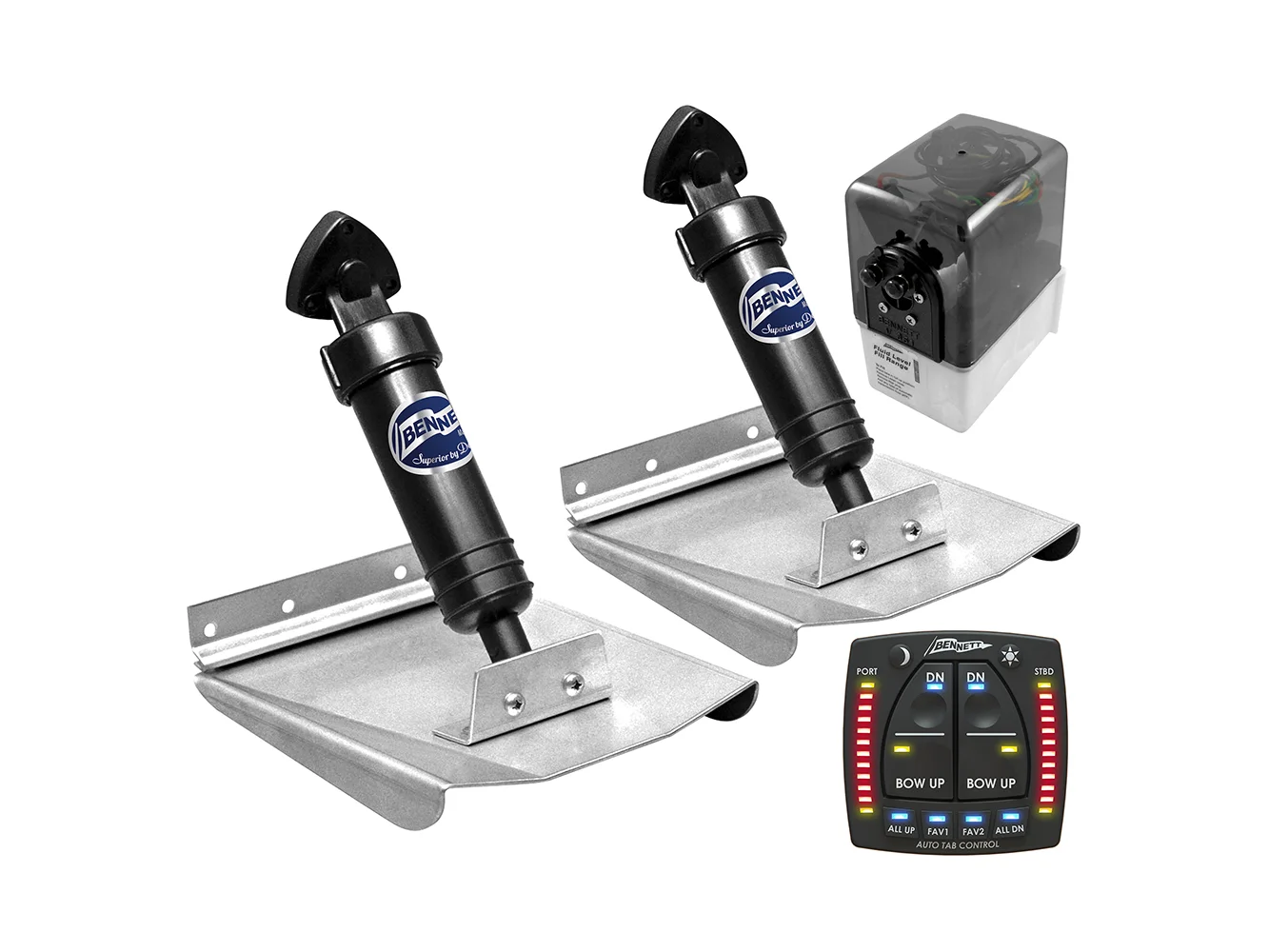 Hydraulic trim tabs are known for power, precision, and durability. Get the most from your boat, no matter what the load, speed, or sea conditions. Using the helm control, you can adjust the tabs individually or in unison to create the perfect cruising attitude. Increase speed and fuel economy, smooth a rough ride, and get on plane faster.