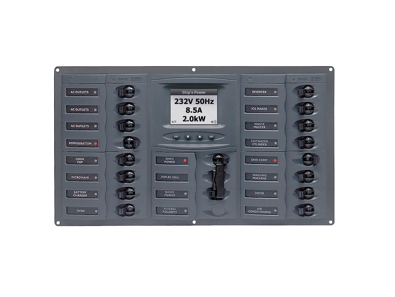 AC Circuit Breaker Panel with Digital Meters, 16SP 2DP AC230V ACSM Stainless Steel Horizontal