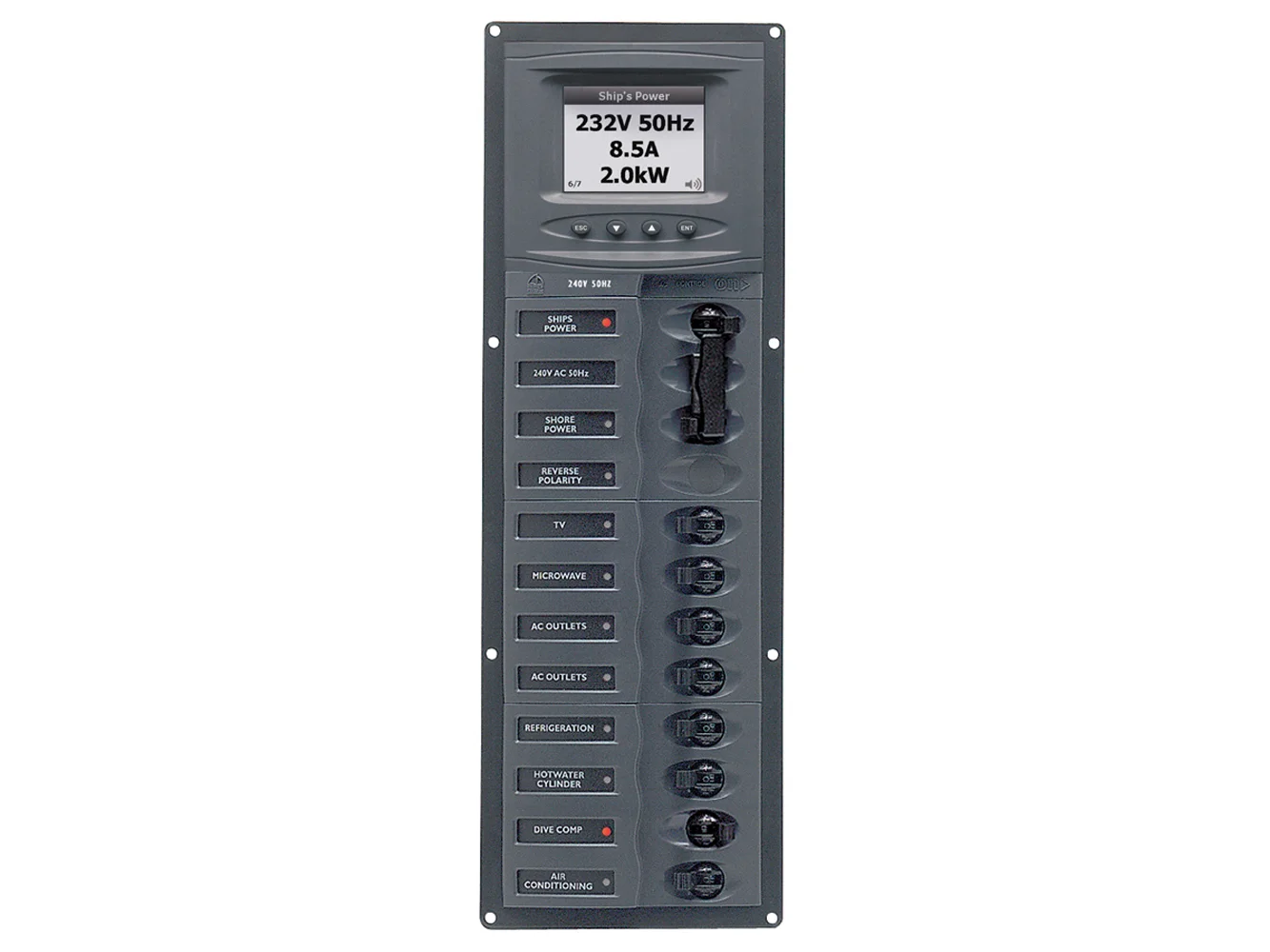 AC Circuit Breaker Panel with Digital Meters, 8SP 2DP AC230V ACSM Stainless Steel Vertical
