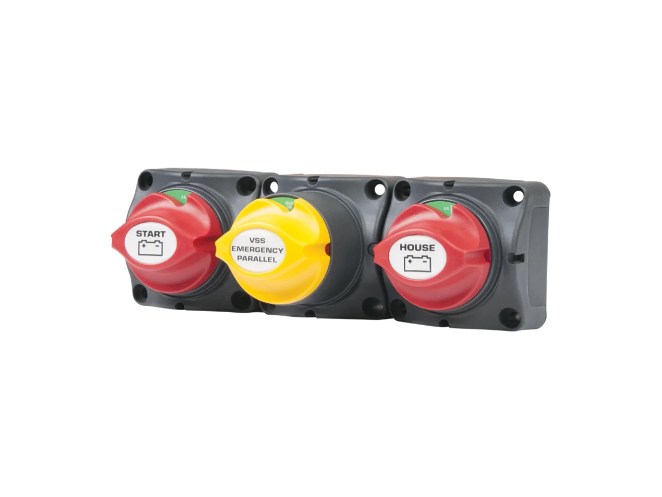The 80-716-0017-00 is an ideal replacement for a battery selector switch. Simply remove the selector switch and connect the existing wires to a 716 cluster. On this model, the VSR and emergency parallel switch are combined into one voltage-sensitive switch that can be remote operated. The 716 cluster is for use on charging systems up to 150A. To be used in single outboard systems with a dual battery bank or single alternator inboard engines with a dual battery bank. The 716 cluster replaces battery isolator systems.