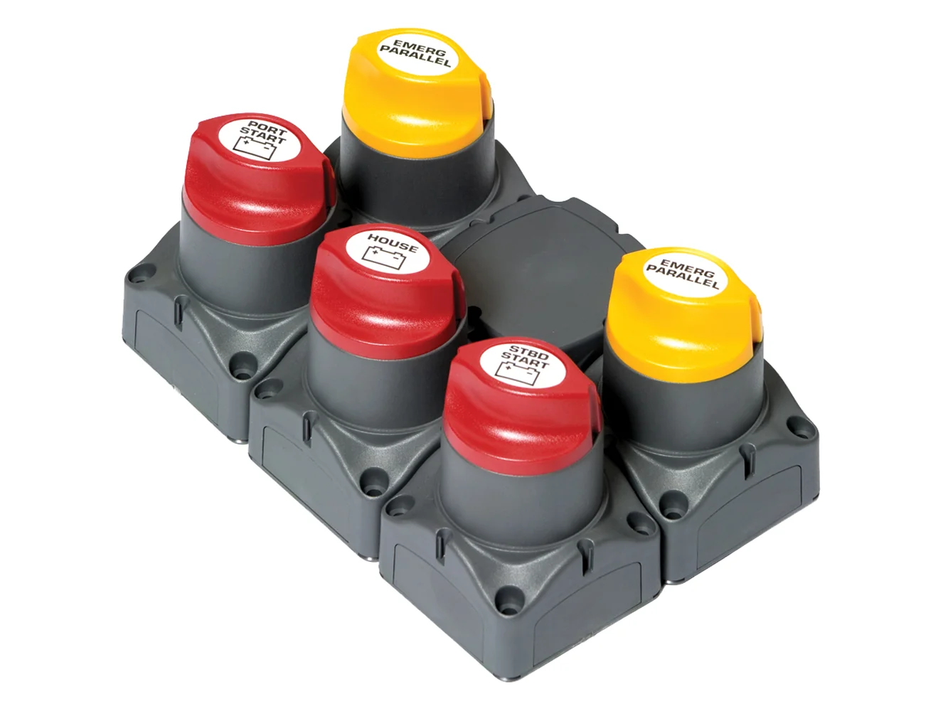 The VSR and Emergency parallel switch are combined into one voltage-sensitive switch, and that switch is able to be remote-operated. The layout allows all cables to be attached from the bottom of the cluster.
