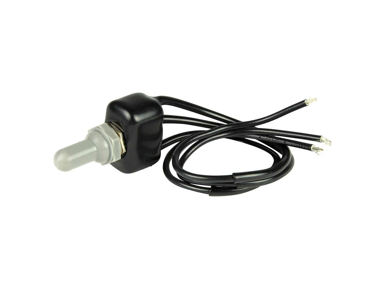 Single pole, double throw toggle switch turns one of two circuits on and off. Common applications include combining nav lights and anchor light with independent bulbs. Completely sealed switches built to stand up to the most extreme conditions. Engineered to IP67 specifications utilizing a double o-ring within a bushing at the toggle and a full epoxy seal at the back.