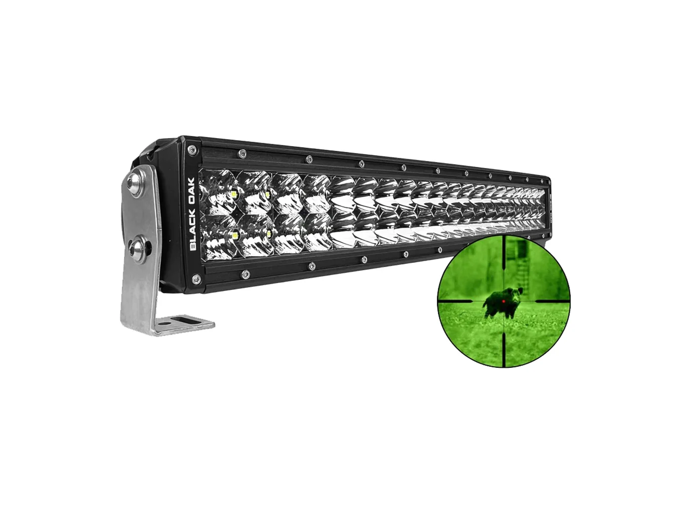 A state of the art, waterproof infrared (IR) 20″ Double Row Series light gives the user an unfair advantage when using night vision optics.