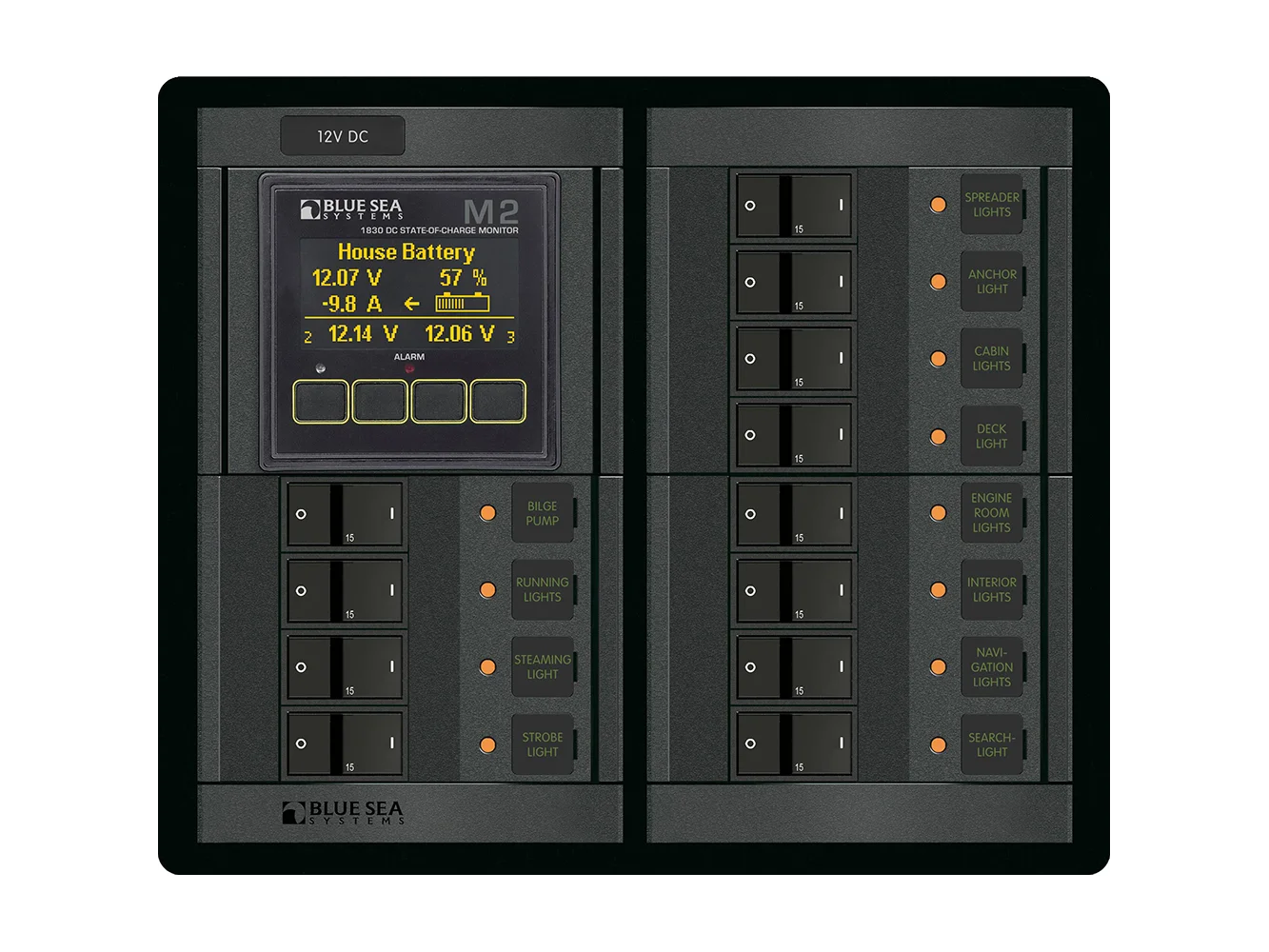 Blue Sea 1496 - 360 Panel - 12 Position 12V Flat Rocker M2 Multimeter w/SOC