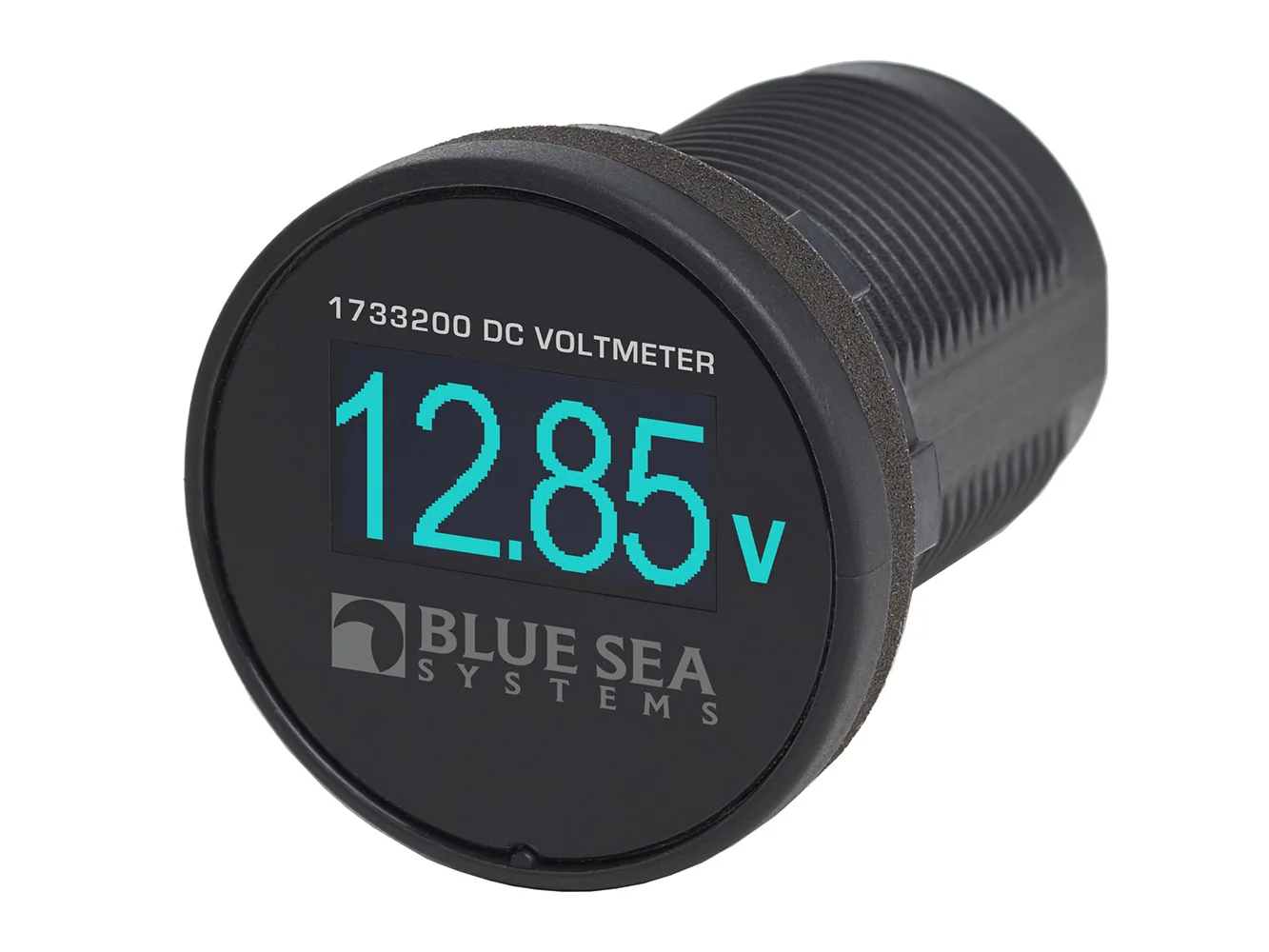 Monitors DC voltage on a bright, waterproof, daylight readable OLED screen.