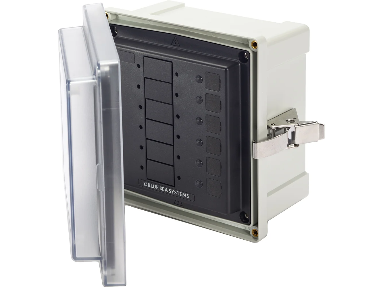 The 3113 panel enclosure is built for main circuit breakers and other large frame devices. Meets ABYC E-11 when used with an ELCI Main circuit breaker and mounted within 10′ of AC shore power inlet.