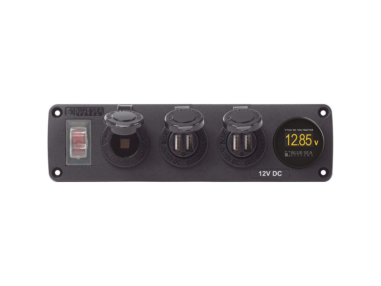 4368 Water Resistant USB Accessory Panel – 12V Socket, 2x 2.1A Dual USB Chargers, Mini Voltmeter