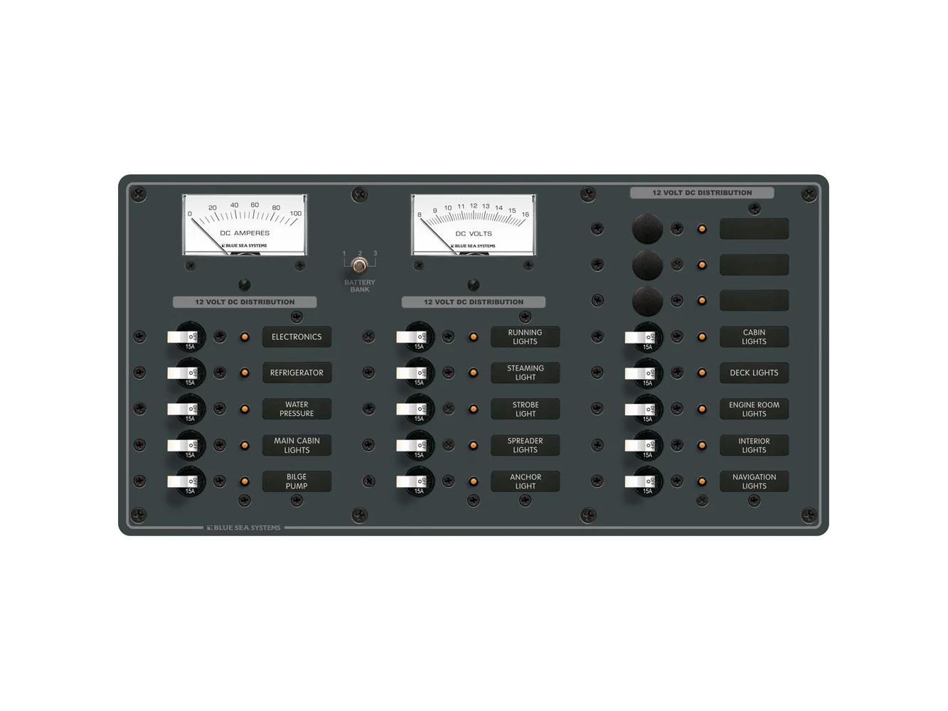 - Panels with meters include toggle switch for mounting up to 3 battery banks