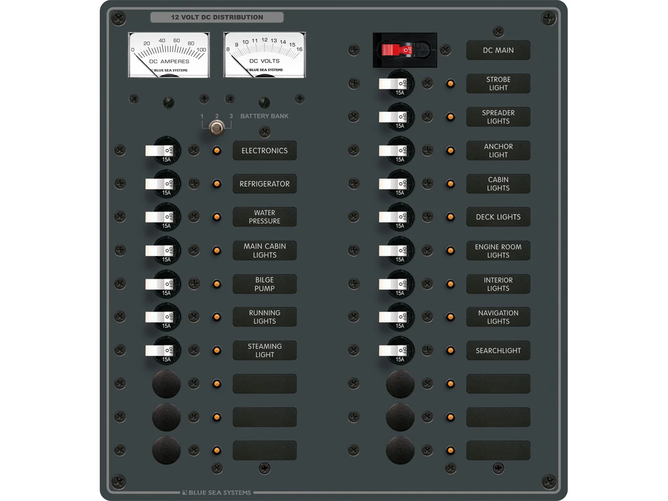 - Panels with meters include toggle switch for mounting up to 3 battery banks
