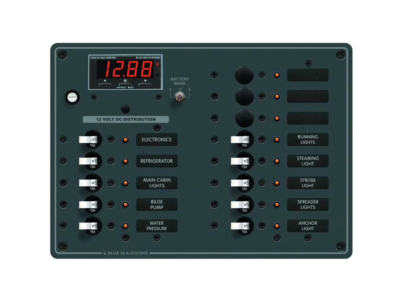 - Panels with meters include toggle switch for mounting up to 3 battery banks