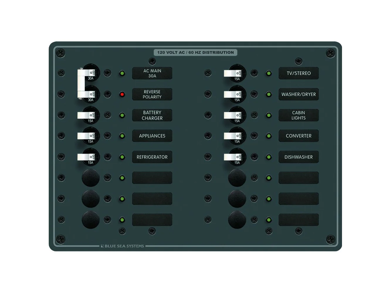 - “ON” indicating LEDs installed in all circuit positions