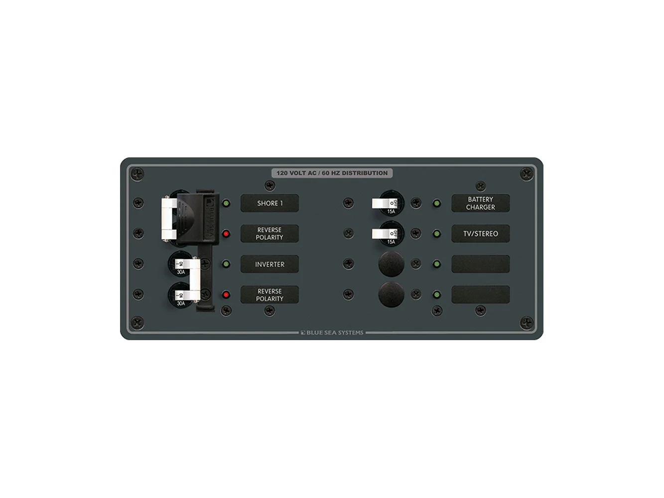 Blue Sea 8499 Breaker Panel – AC 2 Sources + 4 Positions – White