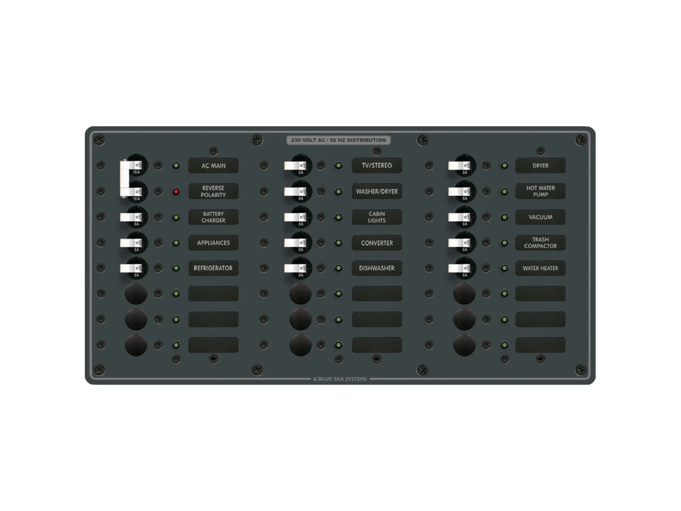 - “ON” indicating LEDs installed in all circuit positions