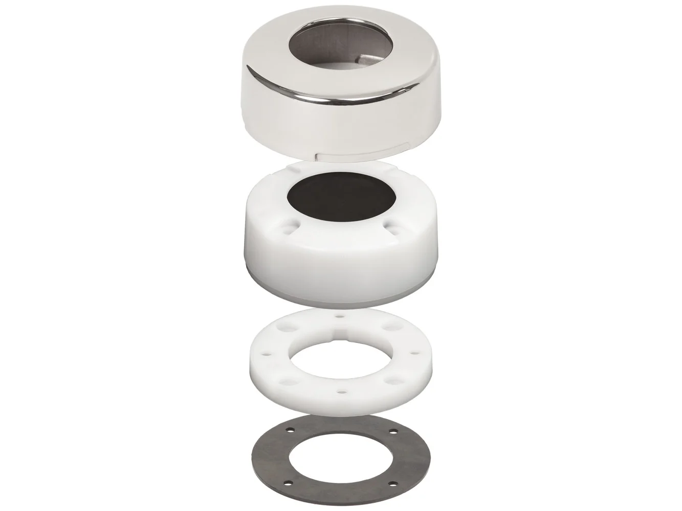 - A polished stainless steel dress cap conceals mounting hardware, matches other deck hardware and offers protection from UV