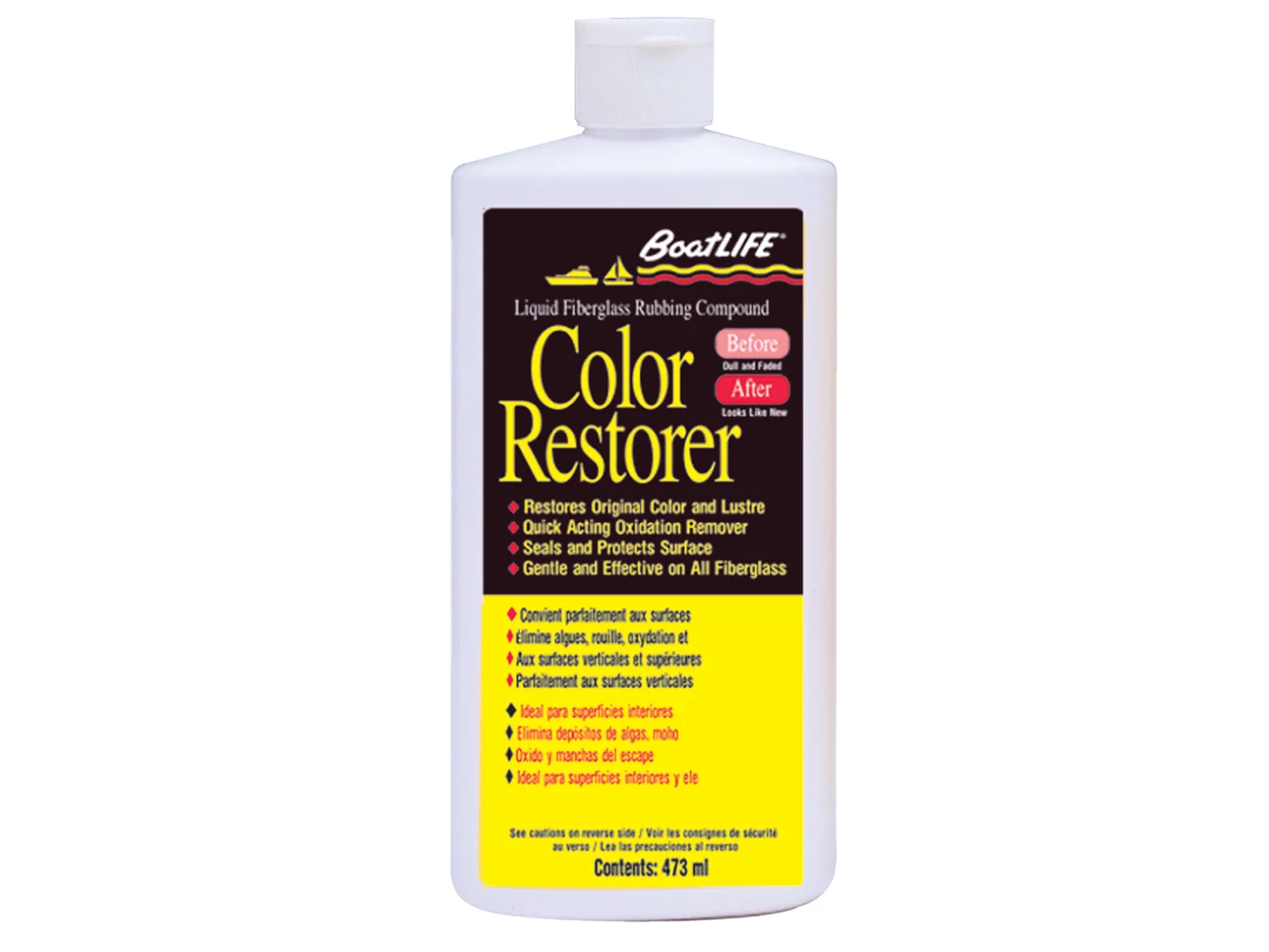 Restores the original color and luster to your fiberglass boat by removing oxidation, chalking and fading. Will not harm or scratch gel coat. Unique formula seals, protects and prepares surface for waxing.