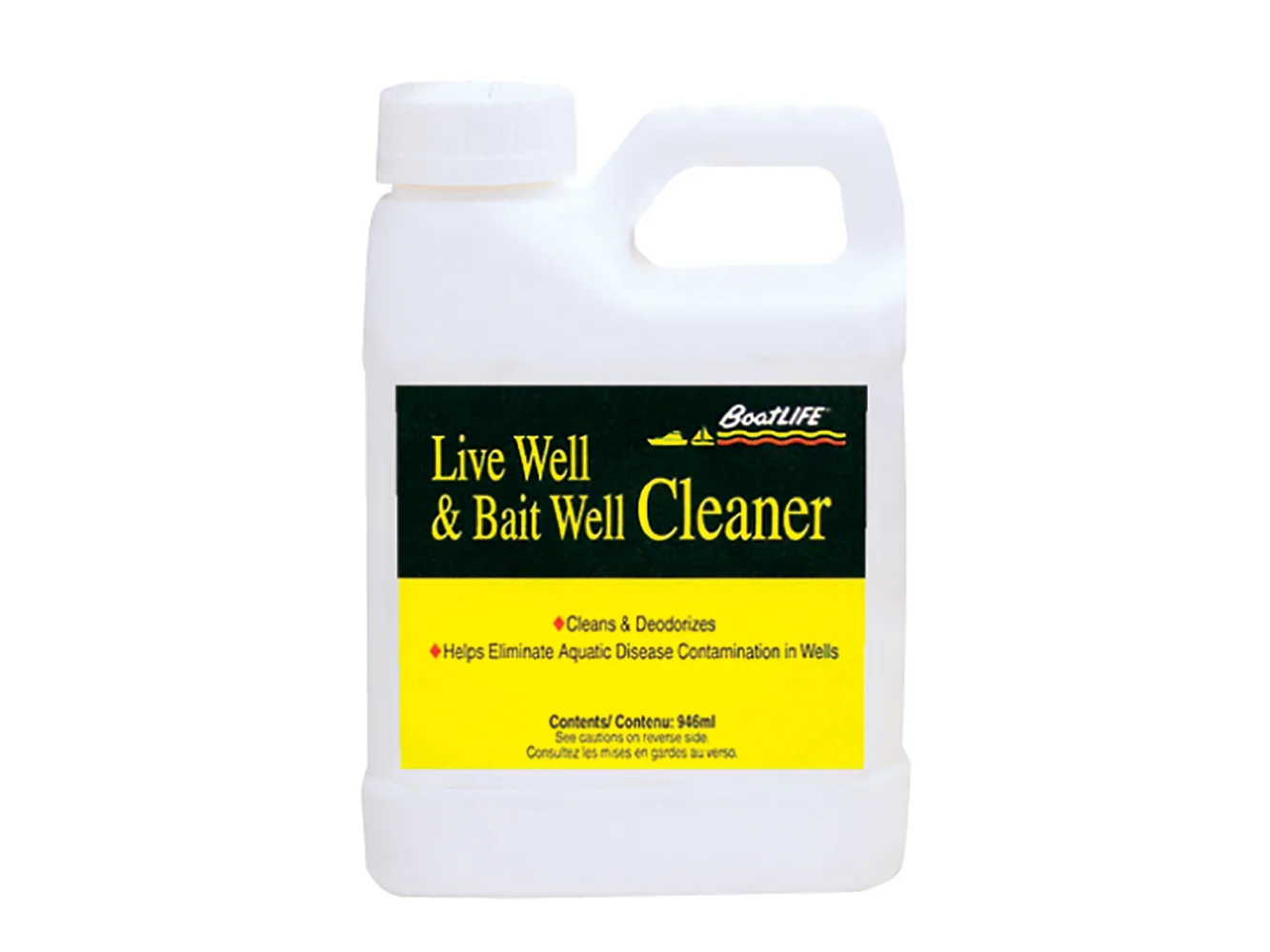 Live Well & Bait Well Cleaner will not harm fiberglass, painted surfaces, or corrode marine metals.