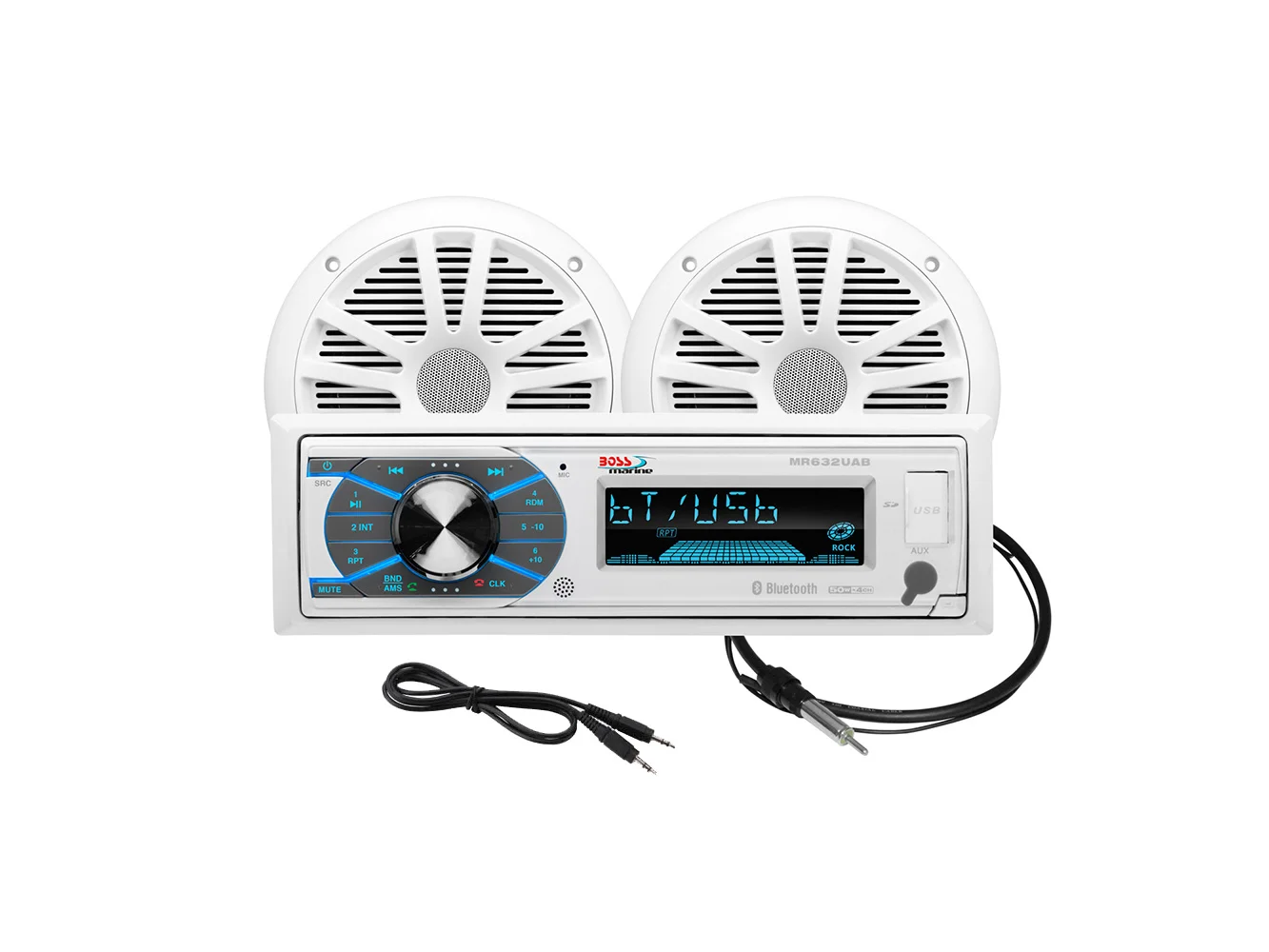 This stereo/speaker combo package from Boss is a great way to upgrade the audio on your boat, RV or ATV without emptying your wallet. The all-weather stereo features built-in Bluetooth, so you can stream your favorite tunes without taking your phone out of your pocket. And your music will sound great on the 6-1/2" marine-rated speakers. This package also includes a 41" dipole antenna, auxiliary cable and mounting hardware.