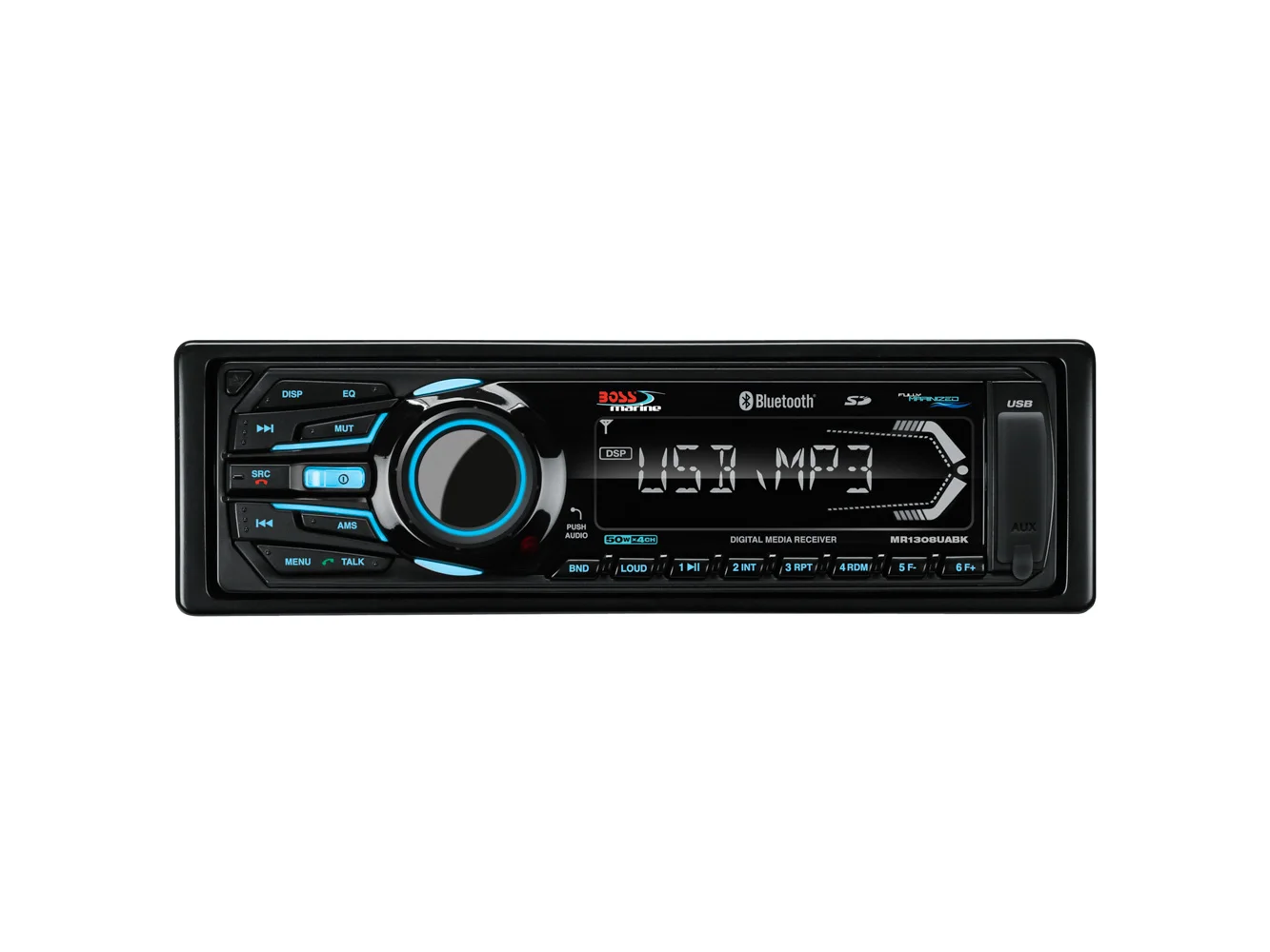 MR1308UABK Bluetooth® – Fully Marinized MP3-Compatible Digital Media Receiver w/USB & SD Memory Card Ports & Aux Input