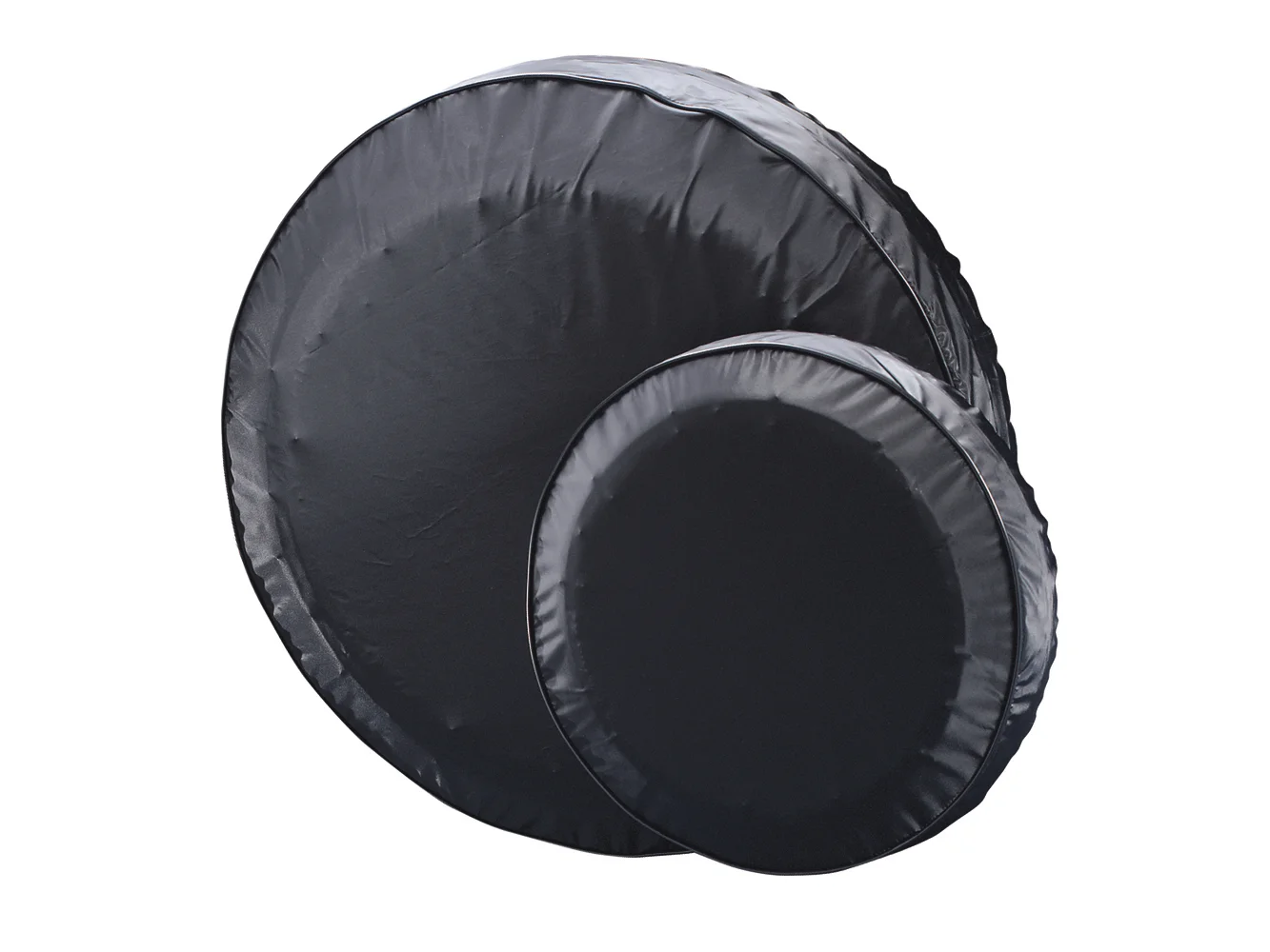 Strong black vinyl with corded edge and elastic closure for a snug fit. Protects tires or spares from sun and foul weather for years of use. Protects tires from sun and foul weather, Strong black vinyl material, Corded edge and elastic closure.