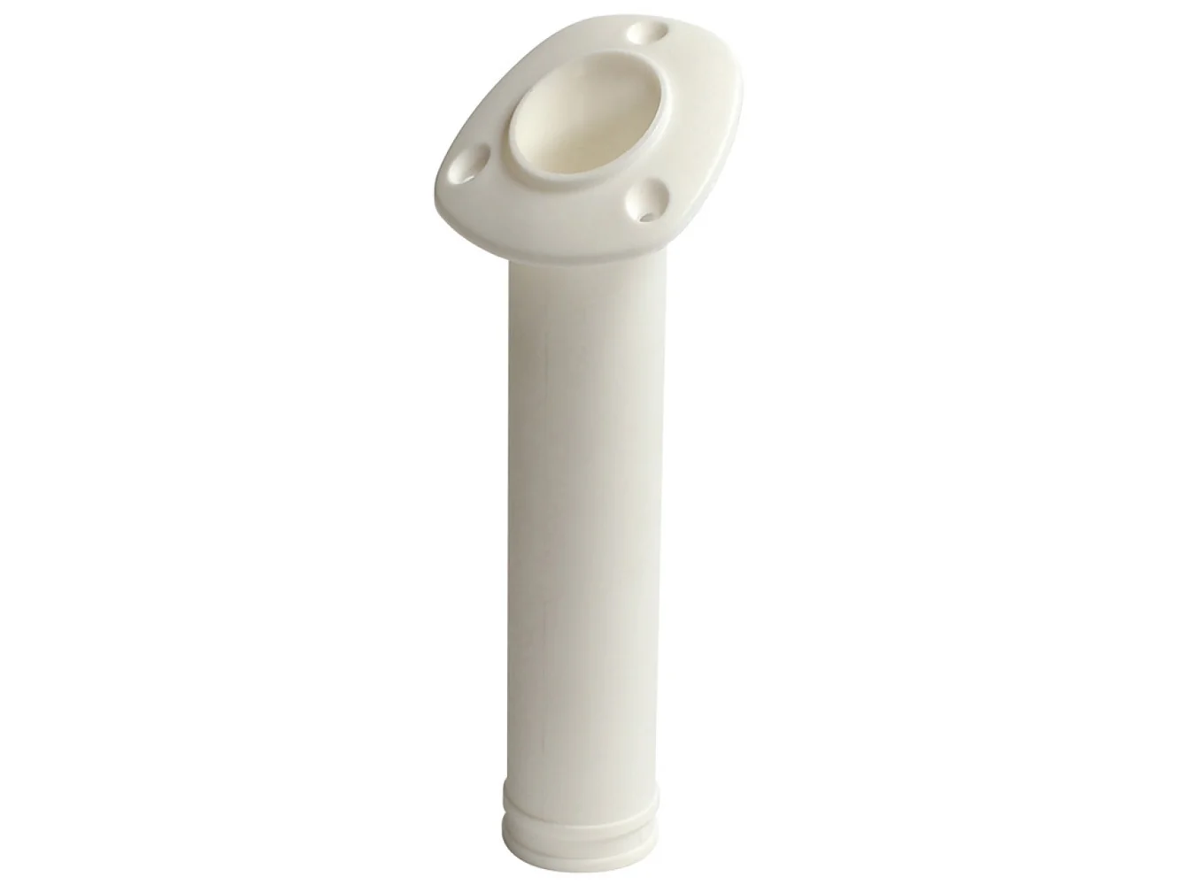 Corrosion-free nylon rod holder. These 30° light-duty fishing rod holders are an economical way to add more rod storage. Molded in one piece from UV-resistant Nylon, these rod holders are tough and corrosion-free. 10″ tube. Cap is 4″ long x 3-1/2″ wide. Installs into a 2-1/16″ hole. Mount with 3/16″ screws (not included).