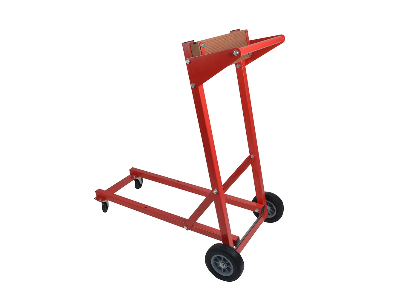 Made from 14 gauge powder coated steel with a weather resistant synthetic wood mounting block this outbord motor dolly makes it easy to transport and hold your motor weighing up to 250 lbs. 8” wheels and 4″ casters with an overall height of 45”, enough to fit a long shaft outboard motor. This outboard motor dolly folds flat to easy storage when not in use. Some assembly required.