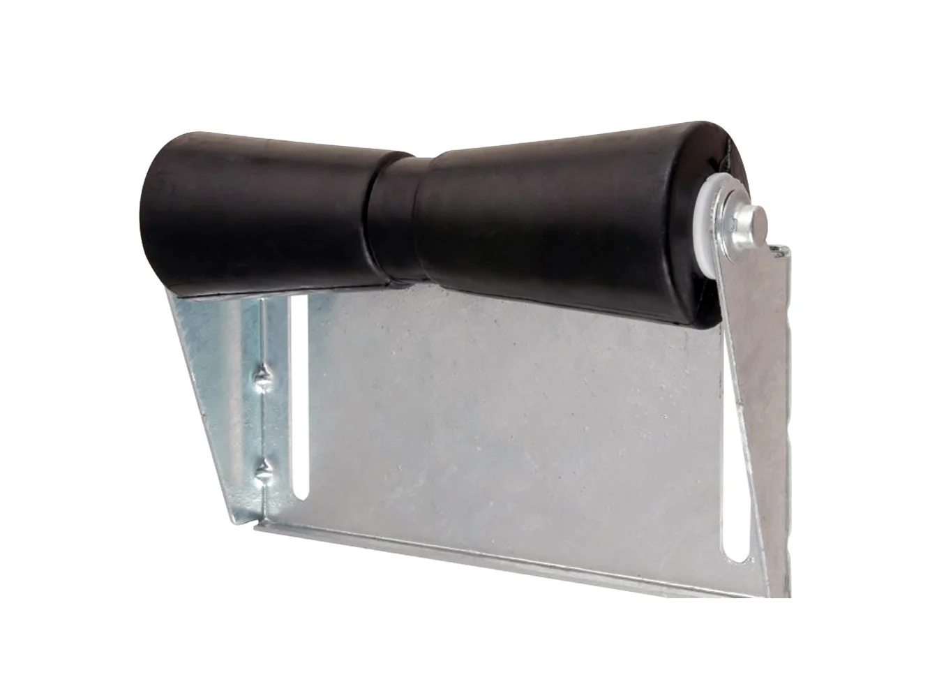 Pre-assembled for easy installation! Strong hot-dipped galvanized bracket with black rubber roller for proper keel support. Mounting slots are 10″ on center